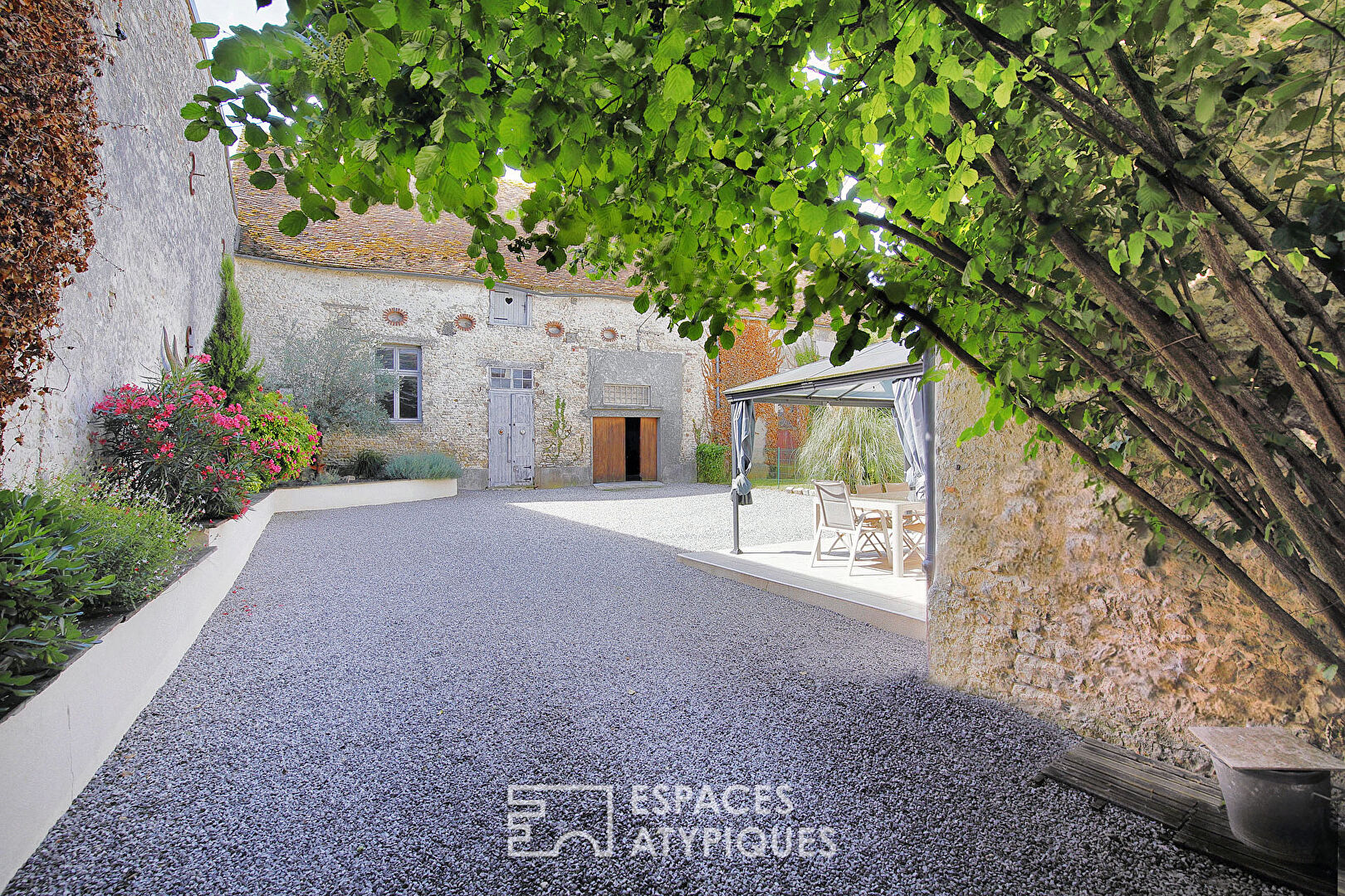 Located in an ancient medieval town 38km south of Fontainebleau, this charming village house has 205m2 of living space on two levels. It is built on a plot of 1199m2 benefiting from a walled garden at the back and a majestic outbuilding to renovate of approximately 175m2 (former 18th century ballroom). On the ground floor, the entrance opens onto a large fitted and equipped kitchen, completely renovated two years ago, with a central island. On one side it serves a pleasant living room and dining room of approximately 50m2, with a wood stove. On the other, there is a laundry room, a storage space and a bathroom with shower and toilet. A pool house adjoins the main house, which can be a bedroom or an independent office as you wish. The first floor has 4 bedrooms, one of which has a mezzanine, leading to a convertible attic. A bathroom with toilet completes this level. On the parking side, a motorized gate gives access to a courtyard with gravel, which can accommodate several vehicles. A vaulted cellar completes this property. The historic ballroom on two levels, with its platform, offers great possibilities. In the house, reversible air-air air conditioning will bring you all the comfort, summer and winter… Transport, shops and schools nearby. DPE Contact: Cédric DASSONVILLE: 06 71 38 50 22 RSAC: 948 248 091 MELUN