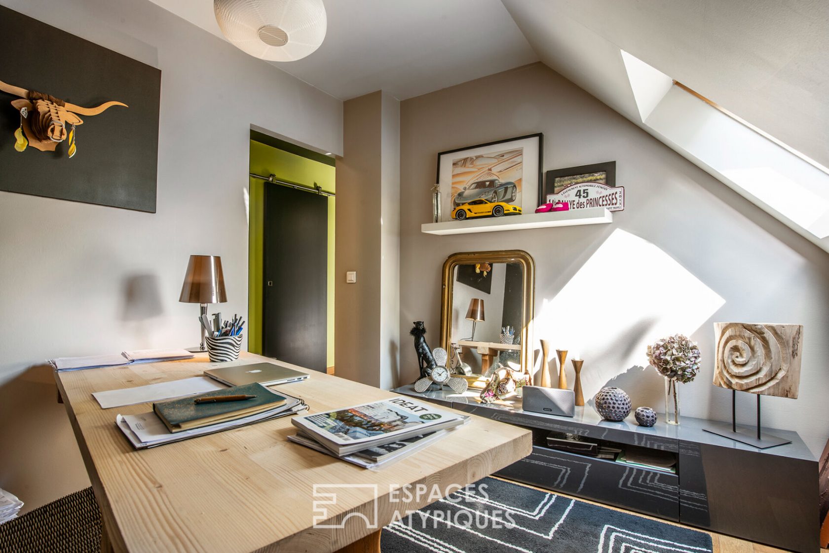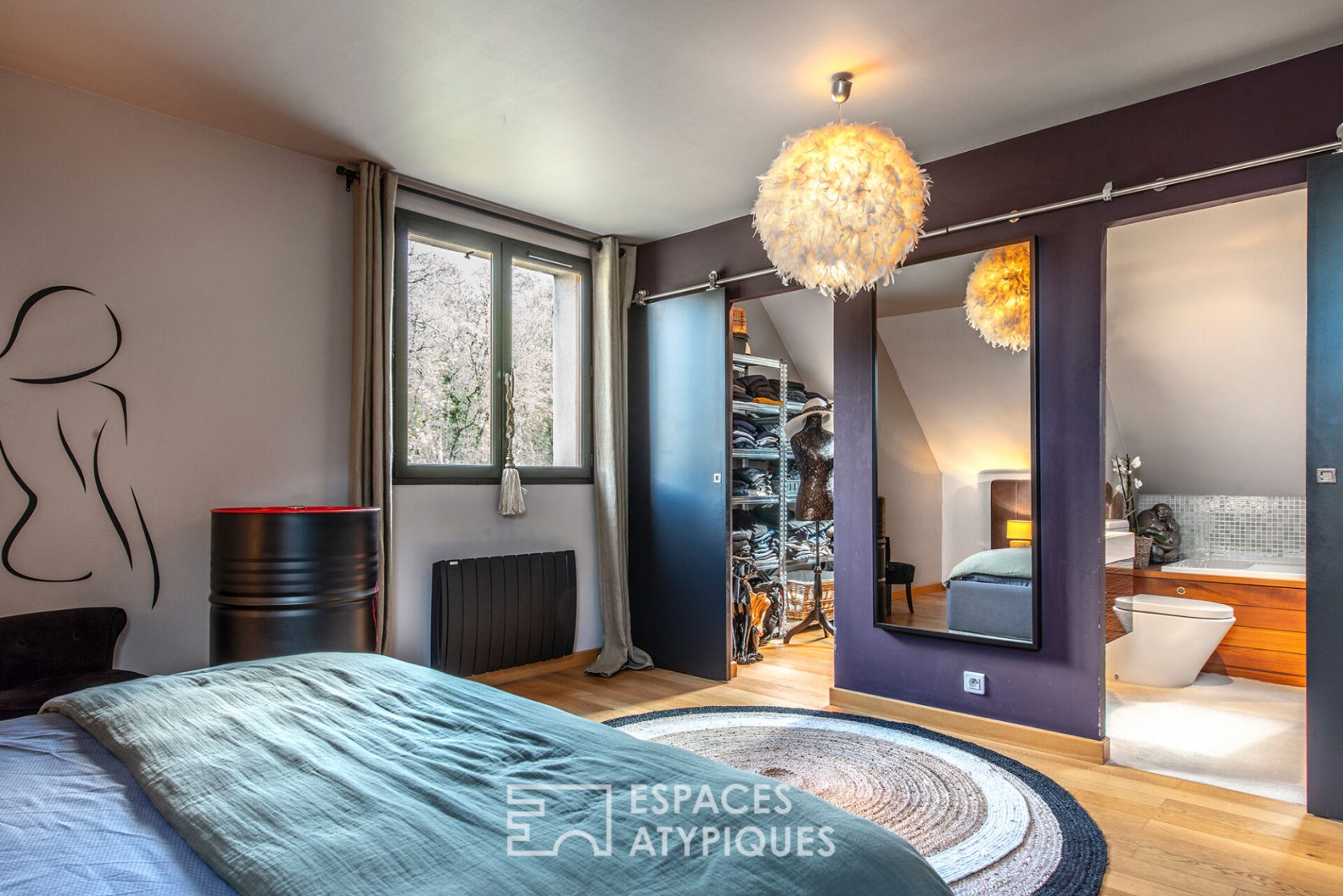 Located in the charming town of Buthiers, 15 minutes from Milly la forêt and 25 minutes from Fontainebleau, this contemporary house of approximately 165m2 of living space is built on landscaped grounds of 1500m2. Renovated by the current owners, the house offers beautiful volumes. The ground floor is composed of an open living room of approximately 70 m2, very bright by the presence of large windows and warm with its oak parquet. This room is equipped with a fitted and equipped kitchen enjoying a large wooden terrace facing south. The floor covered with an oak parquet floor is composed of a landing room including a library and an office. Night side, we discover a master suite with its dressing room and bathroom and a large bedroom with a glass roof. Two other bedrooms and a bathroom complete this level. A double garage of 35m2 (which can be converted into bedrooms) and a laundry room complete this property. This house located in a privileged environment and in the immediate vicinity of the forest will delight families in search of peace, space and greenery. A6 motorway 15 minutes away. Malesherbes station 5 minutes away or St Pierre les Nemours 20 minutes. Shops 5 minutes away. Nursery and primary school in the town of Golf d’Augerville la Rivière at 5 minutes