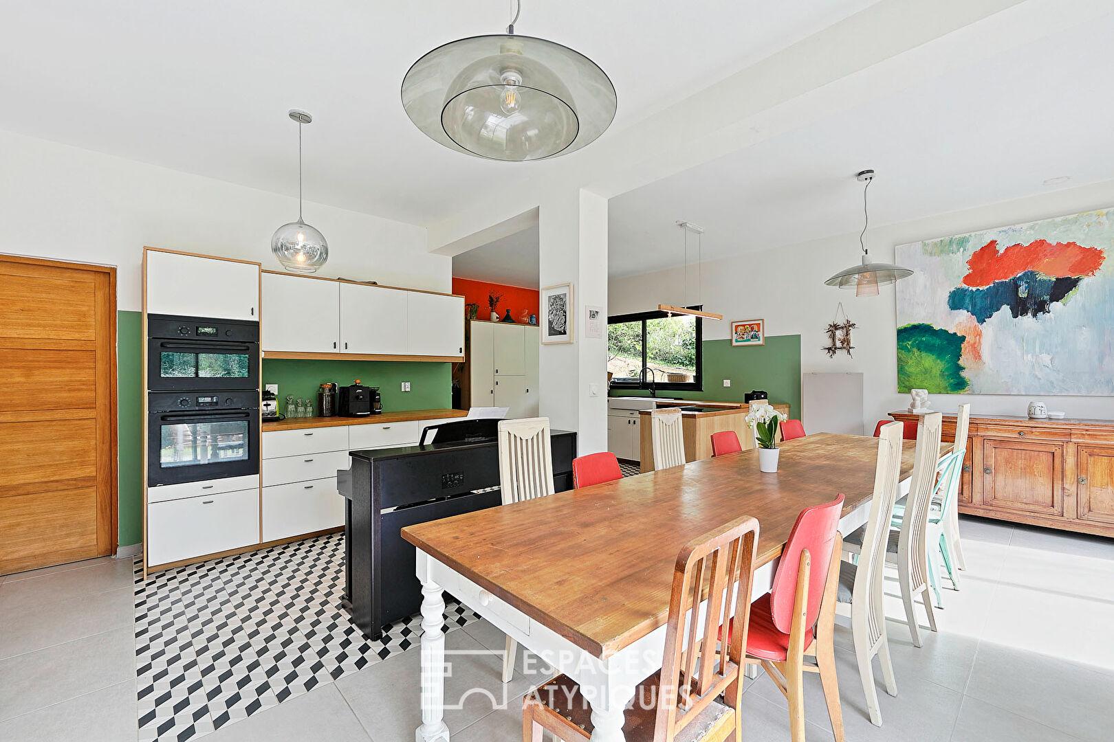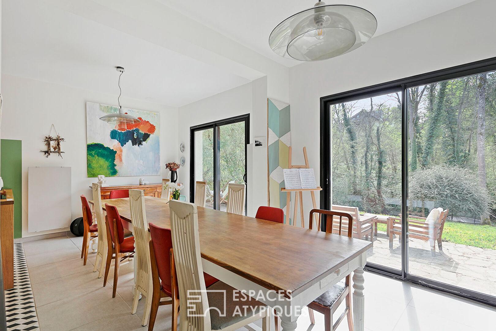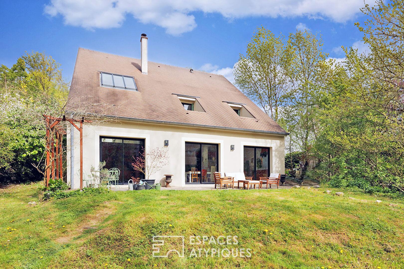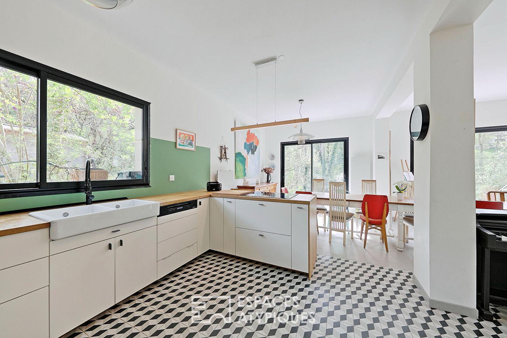 Behind a traditional facade, this unique 198 sq m (2,140 sq ft) house unfolds its singular character across three levels, revealing an unexpected world where space, light, and design interact harmoniously. Conceived as a truly inspiring family home, the house offers a fluid flow between spaces and diverse perspectives on each floor. Rooms bathed in natural light showcase an original interior architecture that blends charm and functionality. It comprises six bedrooms, comfortably accommodating family and guests, as well as three bathrooms for optimal everyday comfort.