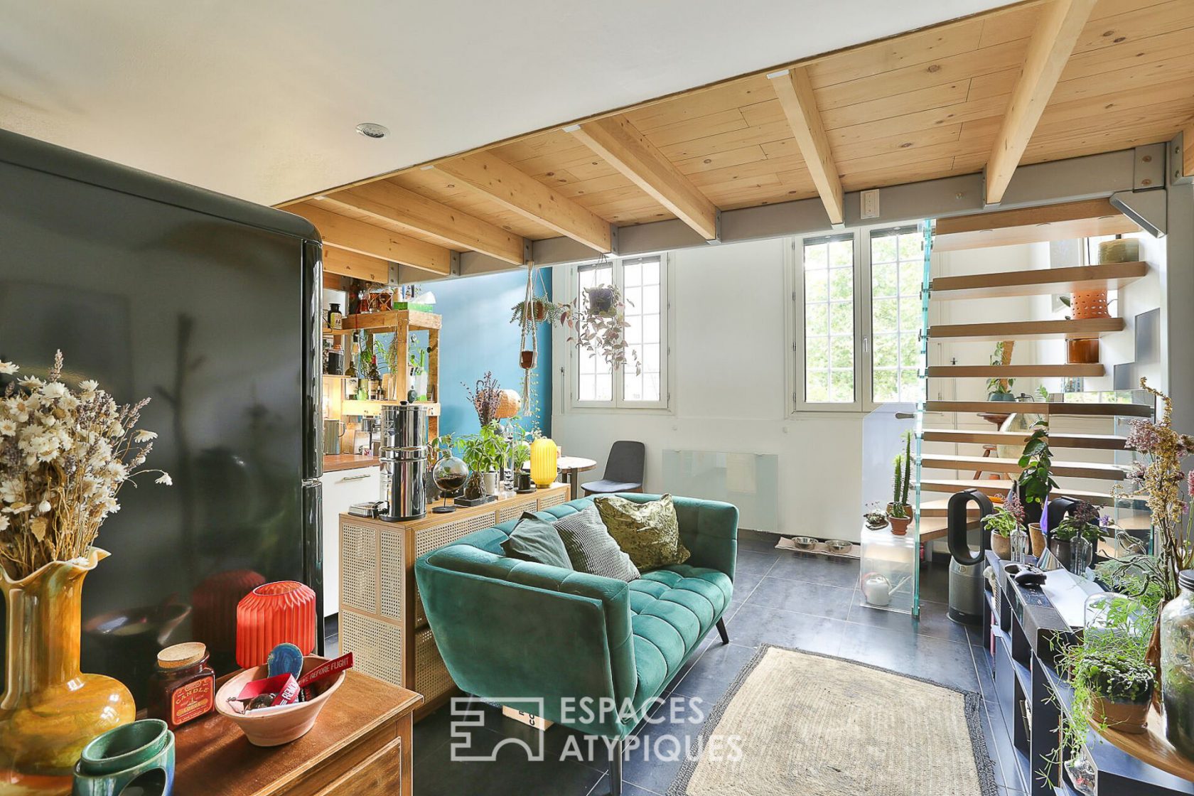 Near the Palace of Versailles, this Loft of 45.38 sqm (54.35 sqm on the ground) is located on a calm and green avenue in the popular district of Saint Louis. This apartment has been entirely fitted out by an architect in order to optimize all the volumes on three levels, each having a dual function, through original, aesthetic and creative solutions.