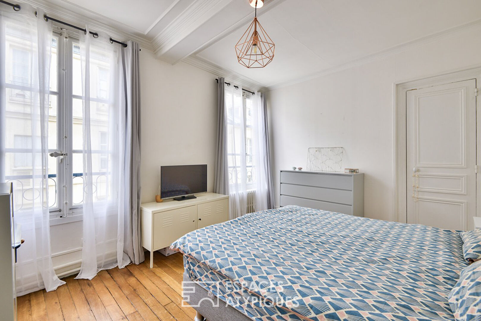 In the heart of the Notre Dame district, equidistant from the castle and the Place du Marché, behind a magnificent carriage entrance representative of the architecture of the 18th Versailles, hides this apartment with its independent entrance like a small house.