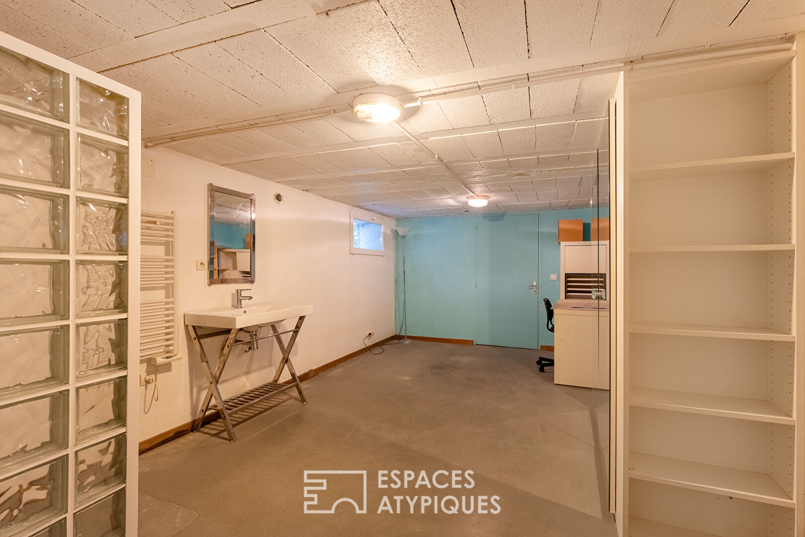 The basement offers a first room, blind, organized as a TV lounge, with a laundry area. Then, a bedroom with a window onto an English courtyard was created with its own bathroom. A workshop and a cellar complete this level.