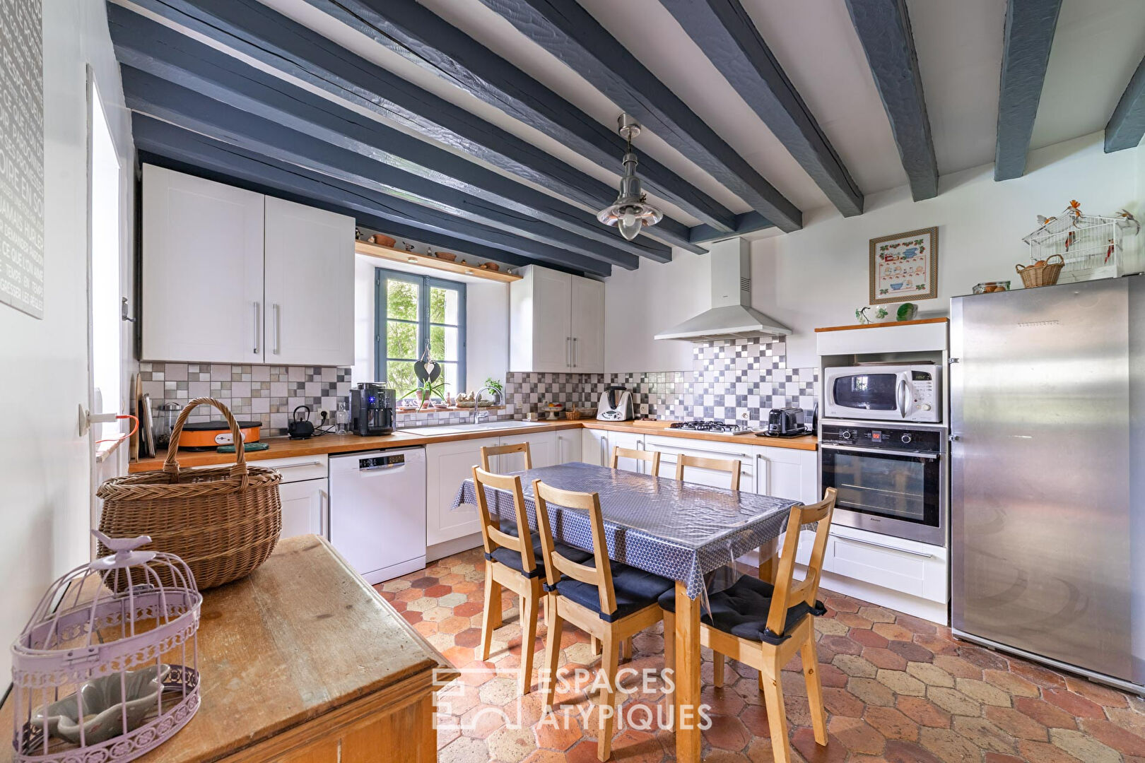 Stone walls, beams, fireplace, floor tiles and solid parquet floors: charm and history imbue this 18th century house with their warmth, which was undoubtedly part of the Seigneurie de Verneuil, itself dating back to the Middle Ages and whose owner , was, for a time, Count Hervé de Tocqueville.