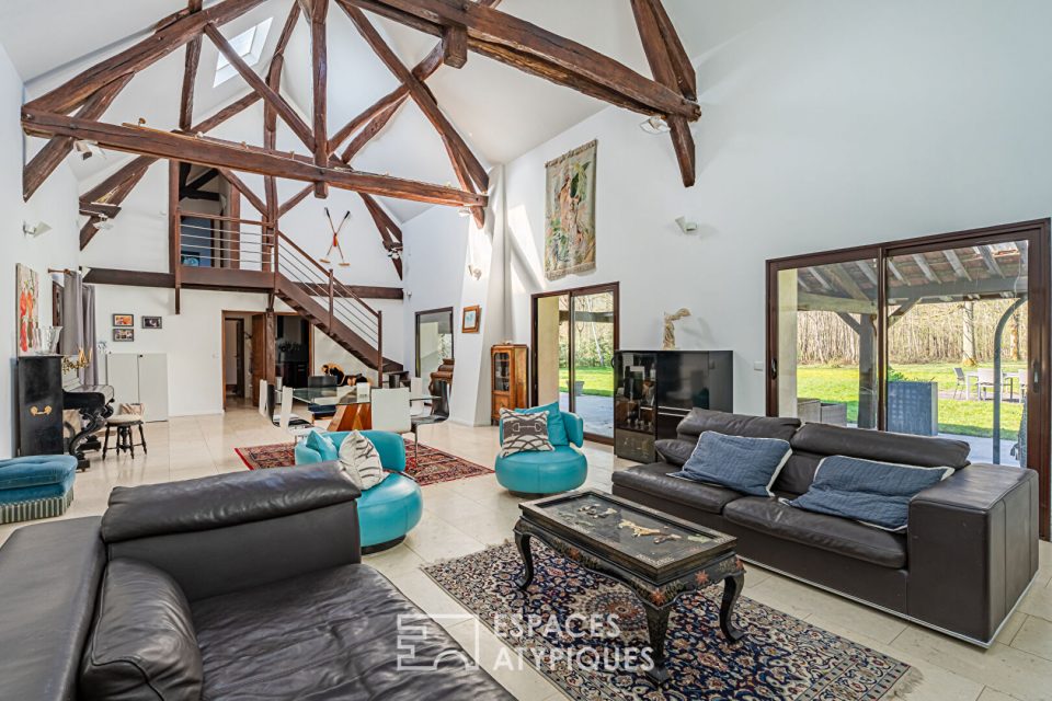 On the ground floor, accessible from the outside, a workshop or a large office, which adjoins a laundry room, has appropriated the old garage fitted out with beautiful openings and remains to be organized as desired.