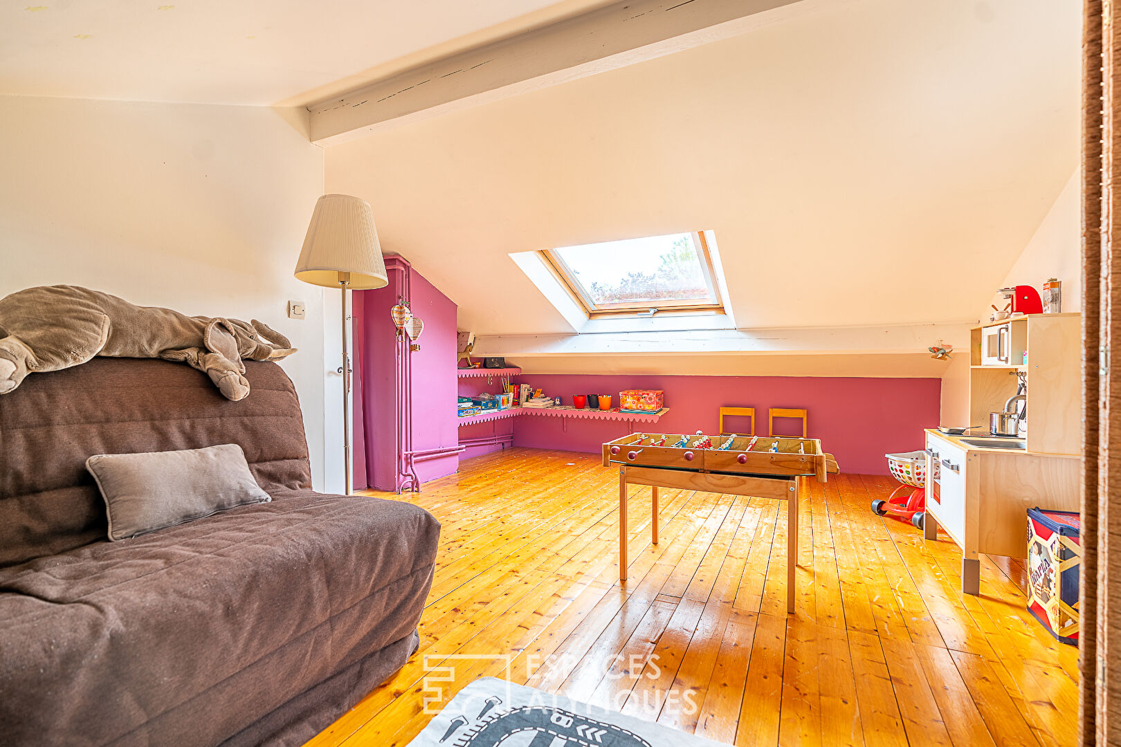 A very beautiful staircase leads to a warm attic playroom of almost 23 sqm on the ground, as well as a large bedroom of more than 29 sqm on the ground: the perfect corner of paradise for a small child or a teenager.