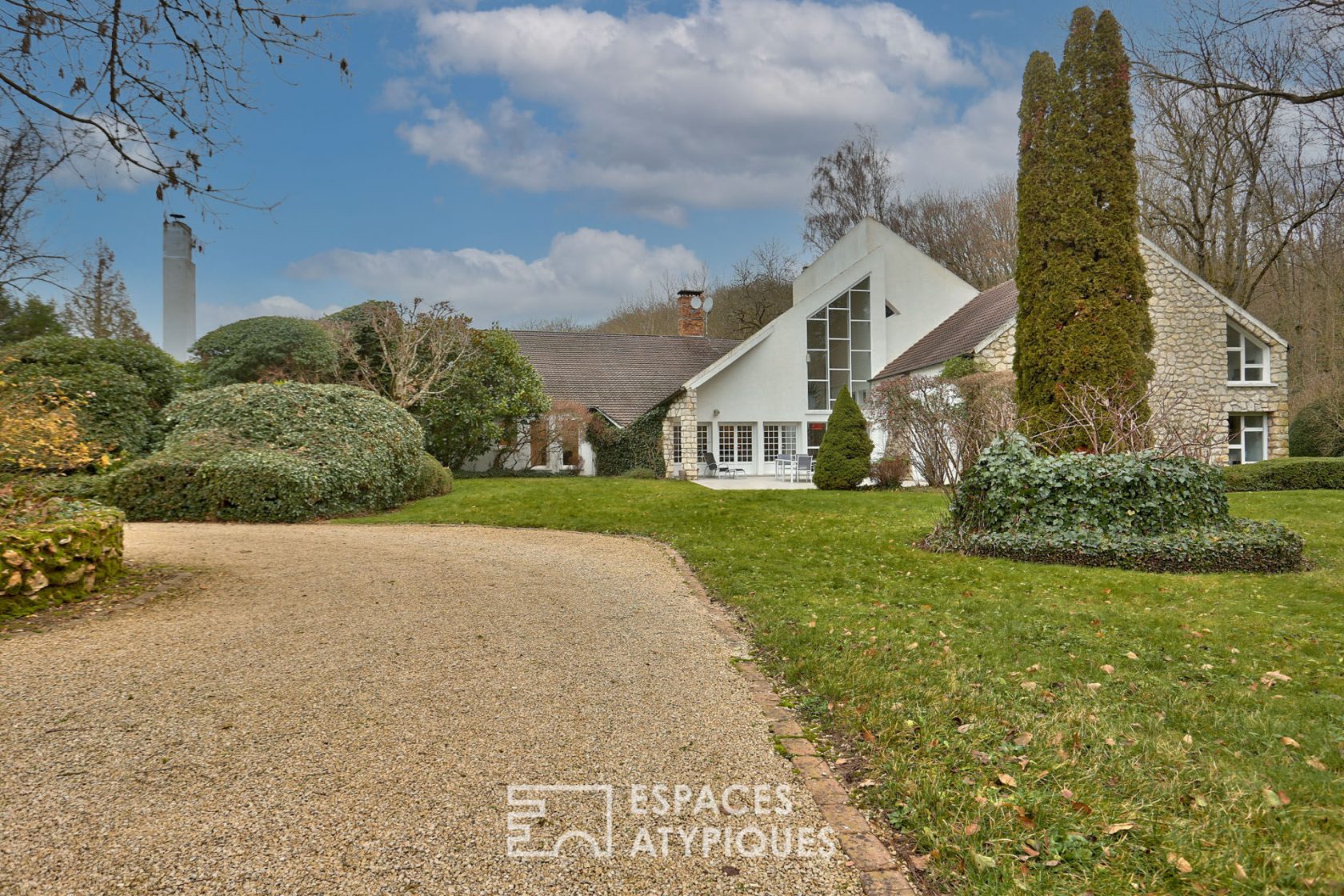 Set on 7150 sqm of wooded land, this 18th century house, its 10th century chapel and its vast contemporary extension, located in the Yvelines (near Dourdan), 35 minutes from Montparnasse station, immediately strikes you with its spaces and its originality.