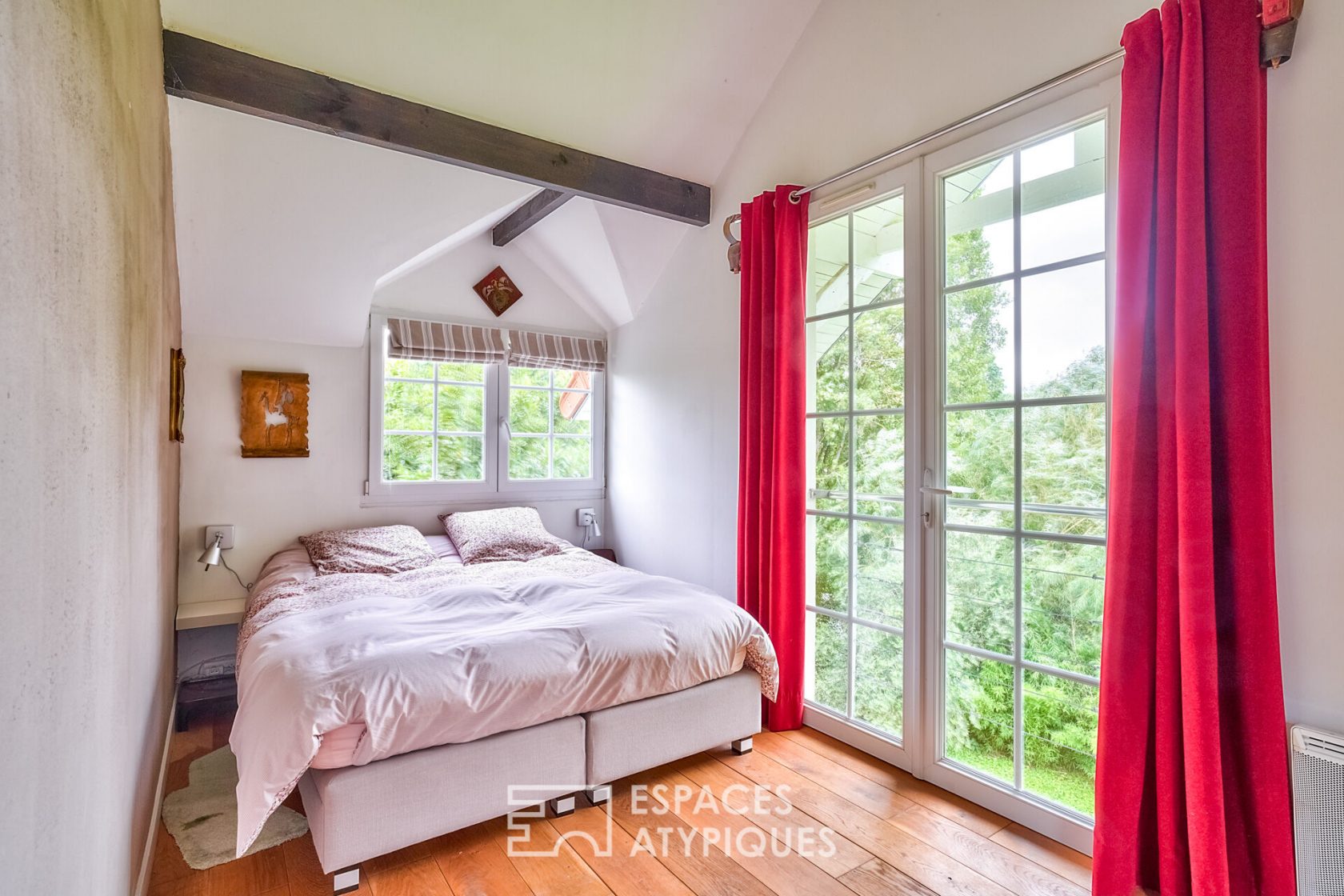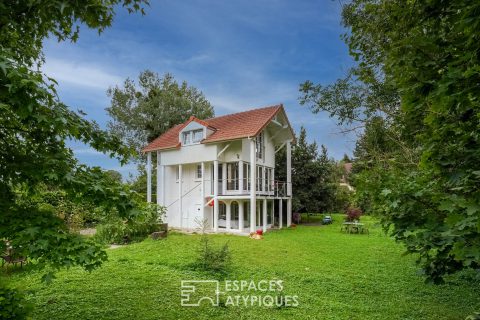 9Located on a private island, accessible by car, in the town of Vaux-sur-Seine, this 103 sqm house enjoys an exceptional panorama over the Seine. This charming house from the 1940s, independent, calm and bright, is embellished with a pretty landscaped fenced garden of 1311 sqm, offering an exceptional panorama and direct access to the banks of the Seine. She has two private pontoons to moor your boat and enjoy water sports.