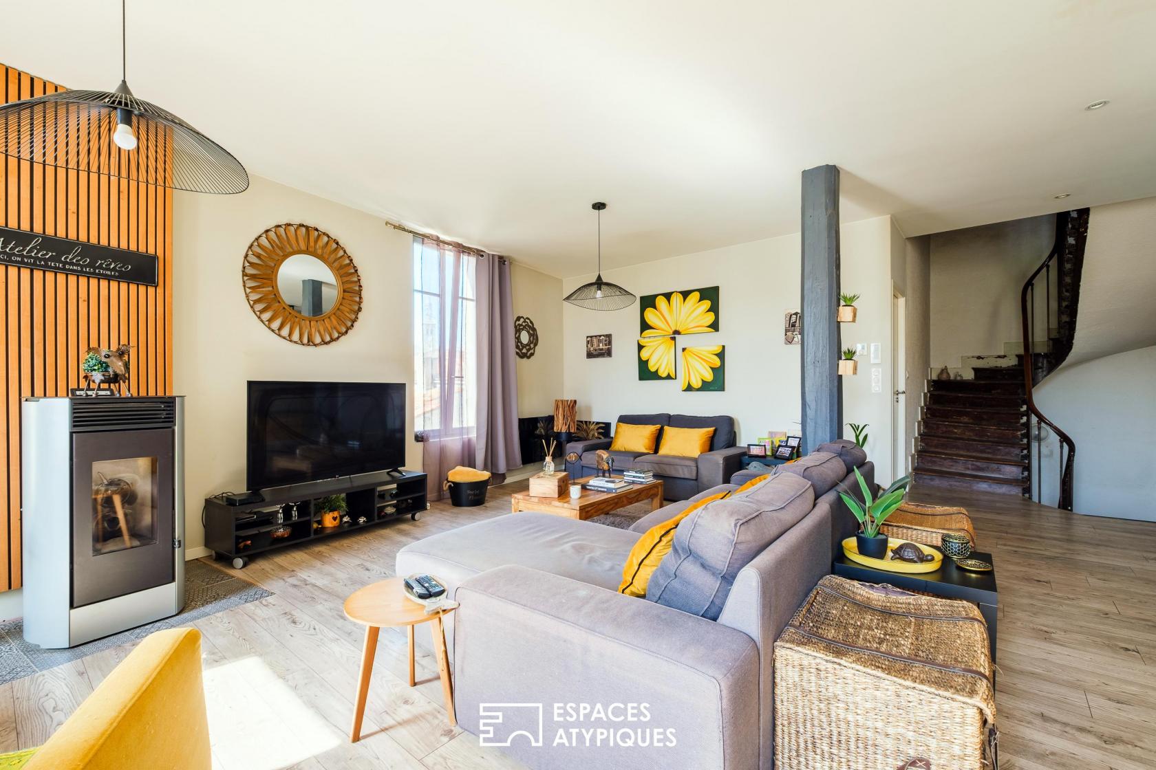 Nestled in a peaceful setting despite the urban bustle, this dual-aspect property offers generous living spaces and remarkable natural light, a rare find in the city center. The entrance opens onto a vast living area where the lounge and dining room are arranged around a wood-burning stove, creating a warm and inviting atmosphere.