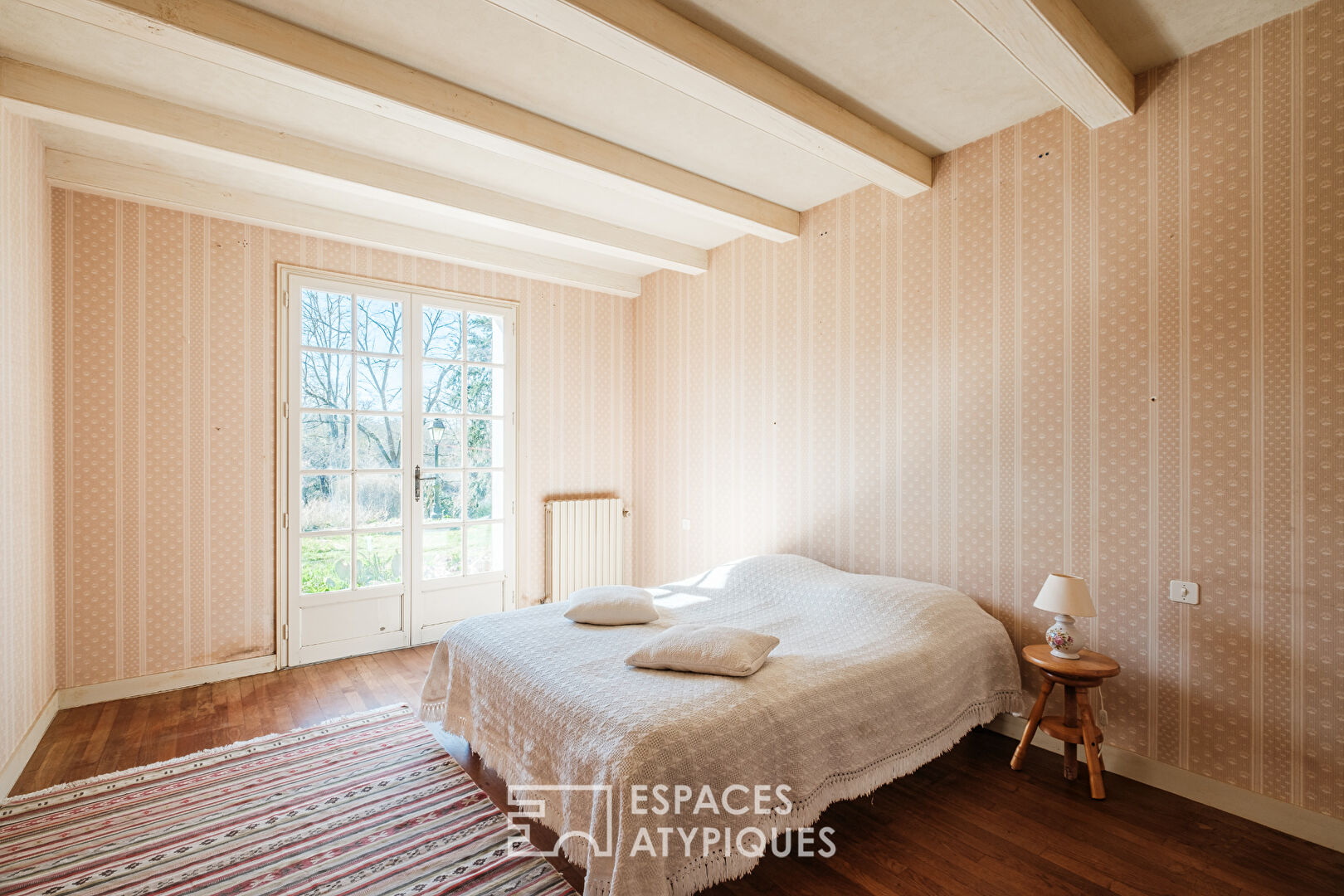 An underground cellar, a boiler room, a storage space and a garage add to the services of this unique property. With its bucolic setting on the banks of the river, this house full of possibilities is an invitation to combine the art of living and personal projects.
