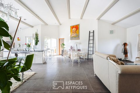 The entrance leads to a spacious cathedral living room bathed in light thanks to its beautiful openings allowing you to take full advantage of its south/west exposure. This universe is made up of a living/dining room and an open kitchen combining modernity and quality. As an extension, a master suite with its bathroom also benefits from the very high ceilings.