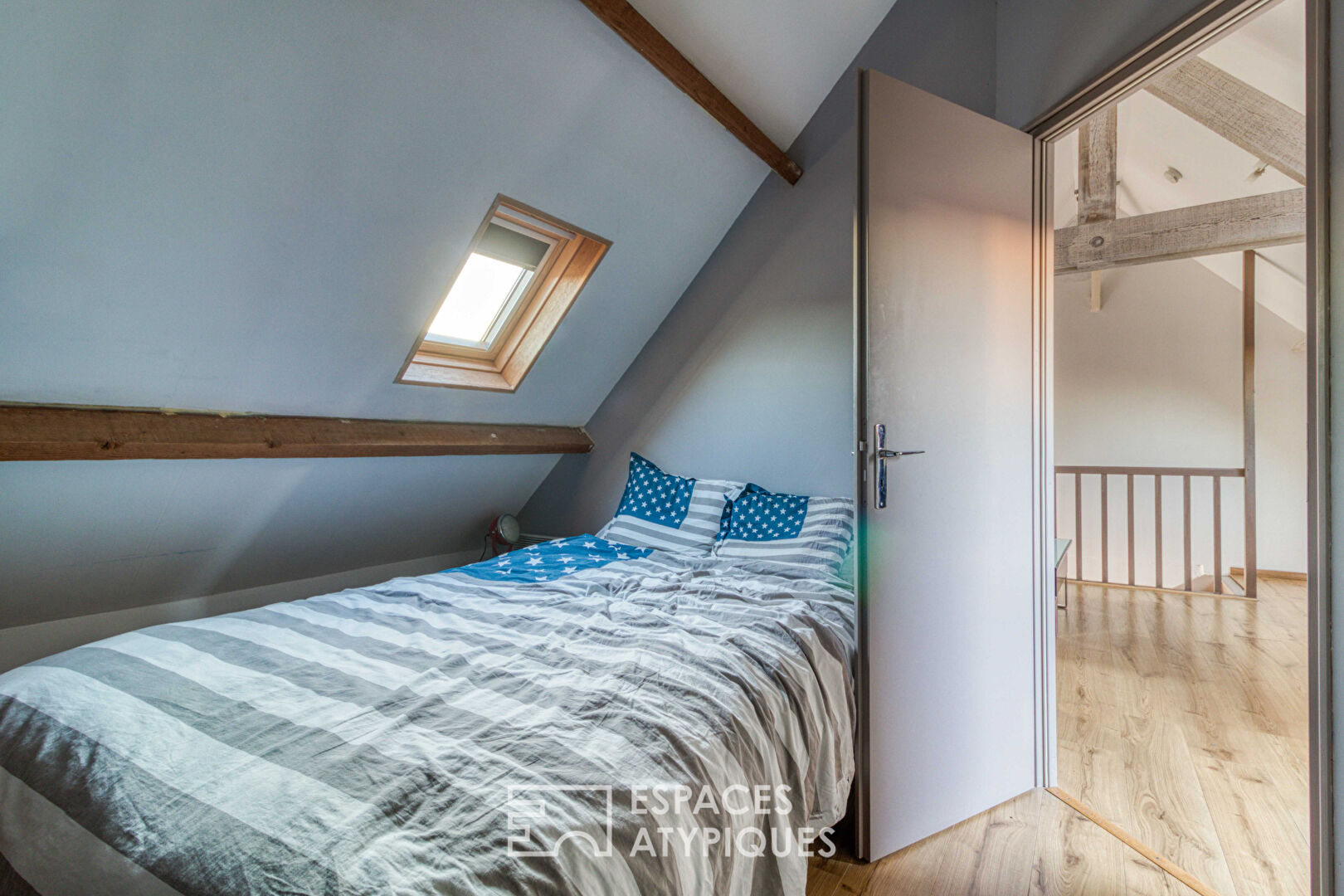 A stone’s throw from the city center, in the immediate vicinity of the train station, is this pearl of 25.45 m2 in Carrez law and 47.77 m2 on the ground. To access the apartment located on the second and last level of the condominium building, a staircase is accessible on the first floor of the latter. The apartment is spread over the entire surface. Combining practicality, comfort and brightness, the property consists of a large floor welcoming the lounge area, a corridor leading to a bedroom, a fitted and equipped kitchen and a bathroom.