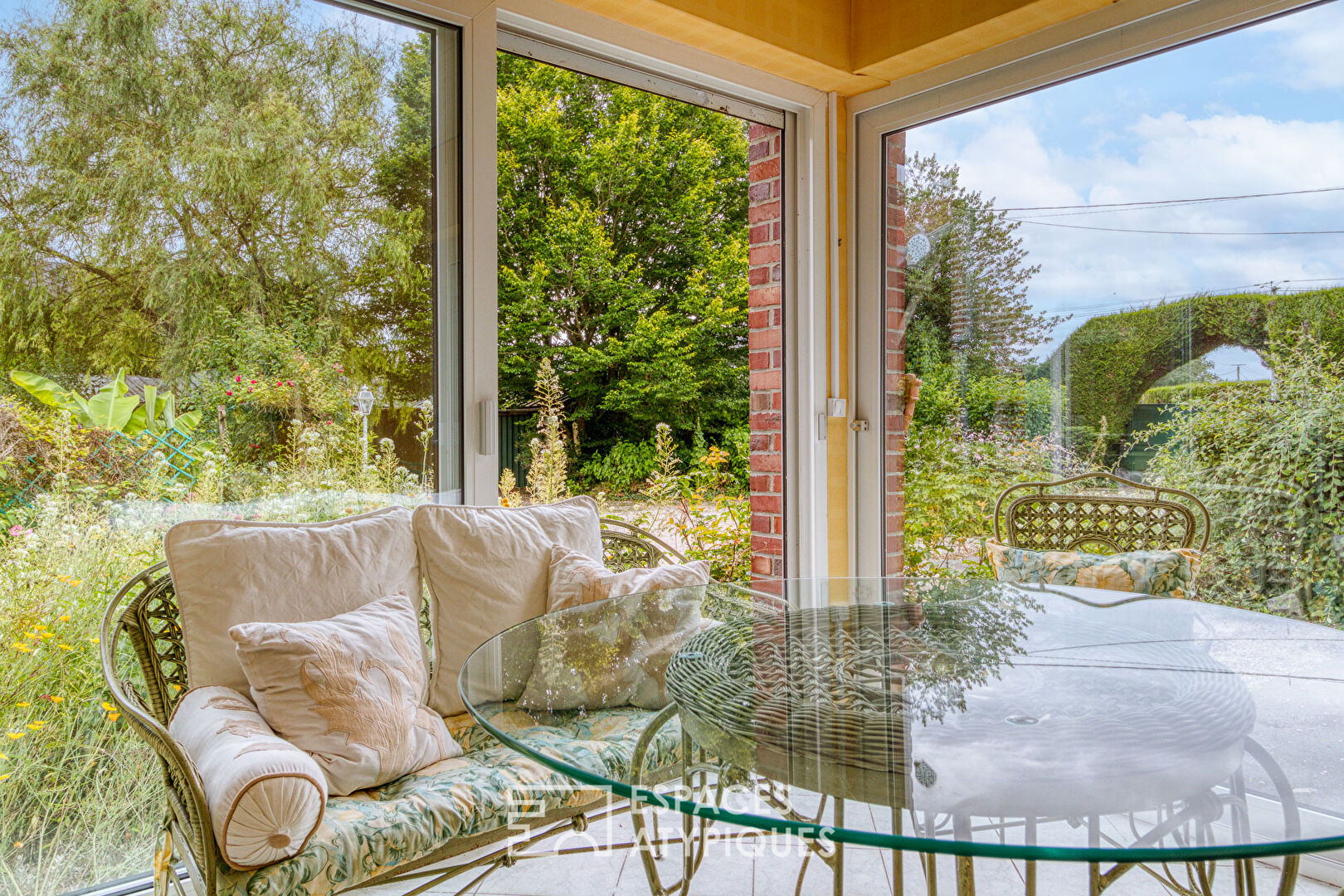 It also includes a fitted and equipped kitchen, as well as a magnificent winter garden, a true haven of peace allowing you to enjoy nature all year round. This part of the house also has a shower room, a bathroom, a storeroom, as well as two large bedrooms upstairs, one of which is equipped with a water point, ideal for a master suite.