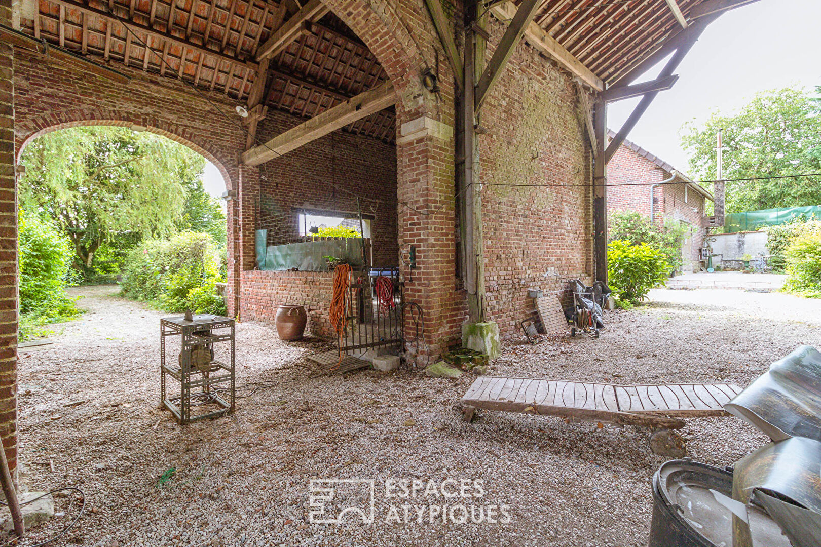 Authentic farmhouse with large outbuildings in the Picardy countryside near the Paris-Lille axis