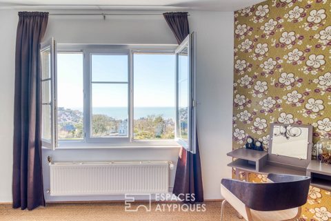 On the top floor, one is dazzled by the breathtaking view of the bay offered by this last bedroom and its bathroom. With the cries of the seagulls and the sound of the waves rocking us as music, the list of benefits of living by the sea is long. Here, the landscapes are conducive to any form of artistic creation. Fascinating and elegant, it is no less atypical, friendly and family-friendly.