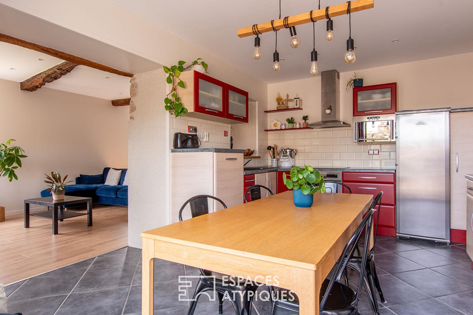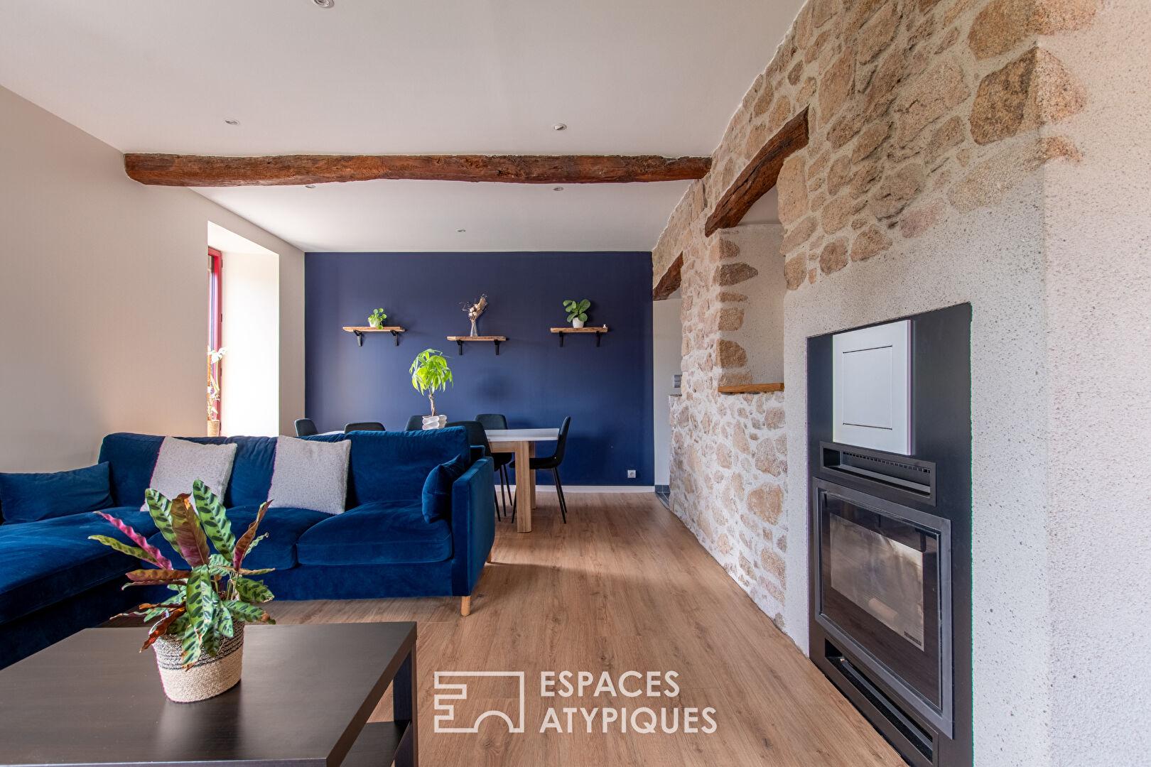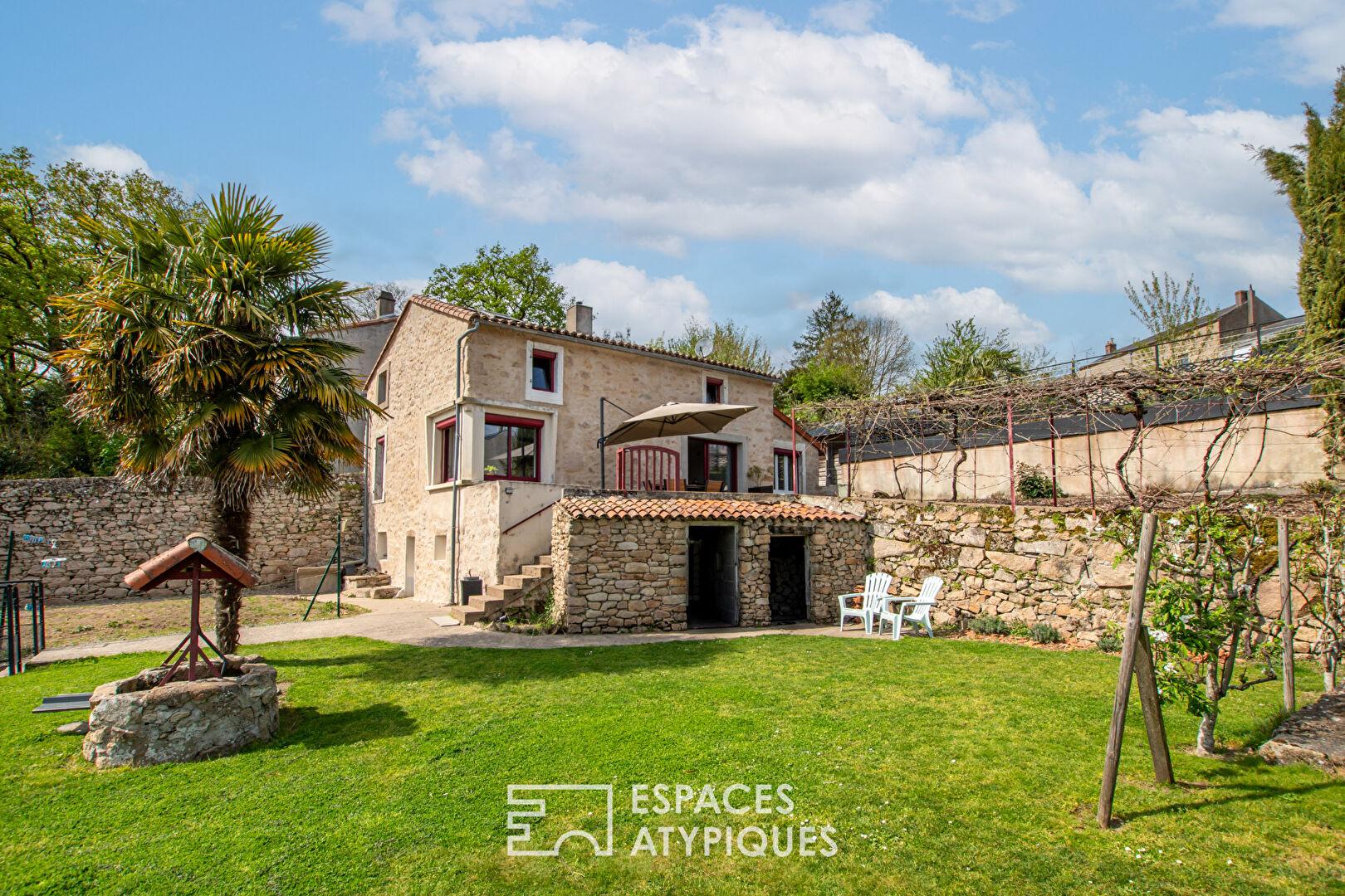 Located in the hills above the town of Mortagne-sur-Sèvre, this renovated period house offers 104 sqm of living space on a terraced plot of 714 sqm.