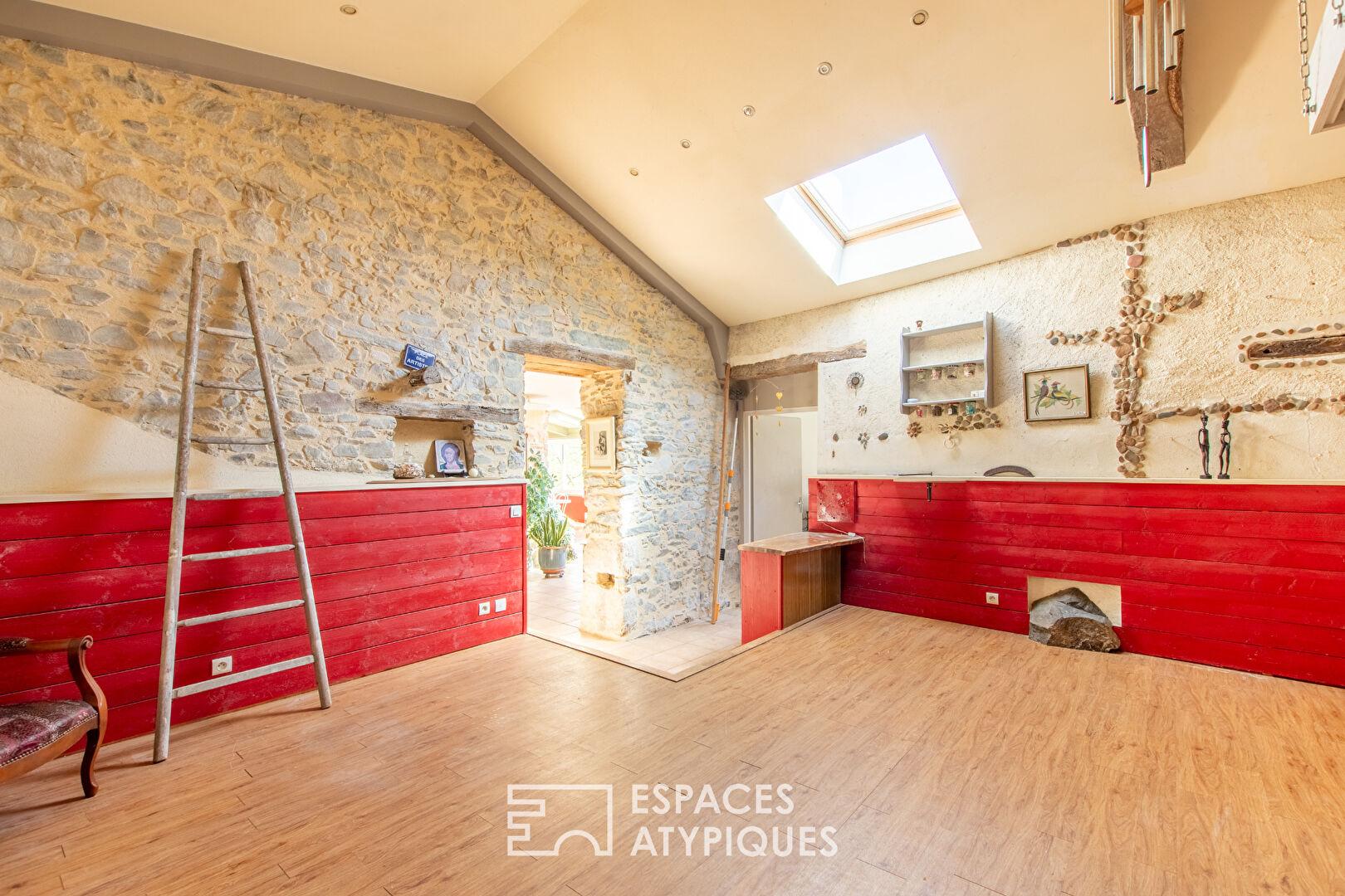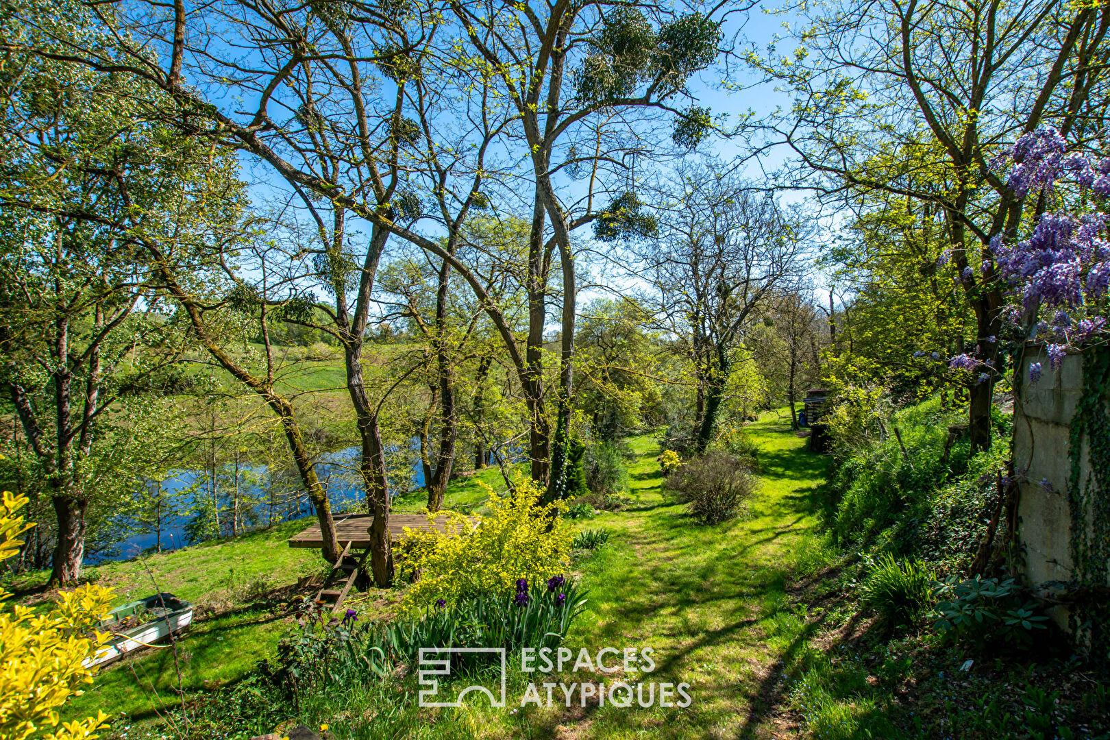 Outside, the landscaped garden, a veritable living painting, provides a poetic and timeless green oasis. It opens onto the banks of the Maine River, creating a truly privileged living environment. A workshop, perfect for your artistic or craft projects, completes the property. A few minor renovations will reveal its full potential. Located less than 10 minutes from Montaigu, its train station, and shops, this unique property enjoys a strategic location, just 30 minutes from La Roche-sur-Yon and Nantes airport, and 40 minutes from the famous Puy du Fou theme park. Offering charm and tranquility, this haven of peace provides a rare living environment, ideal for a family home or a tourism project.