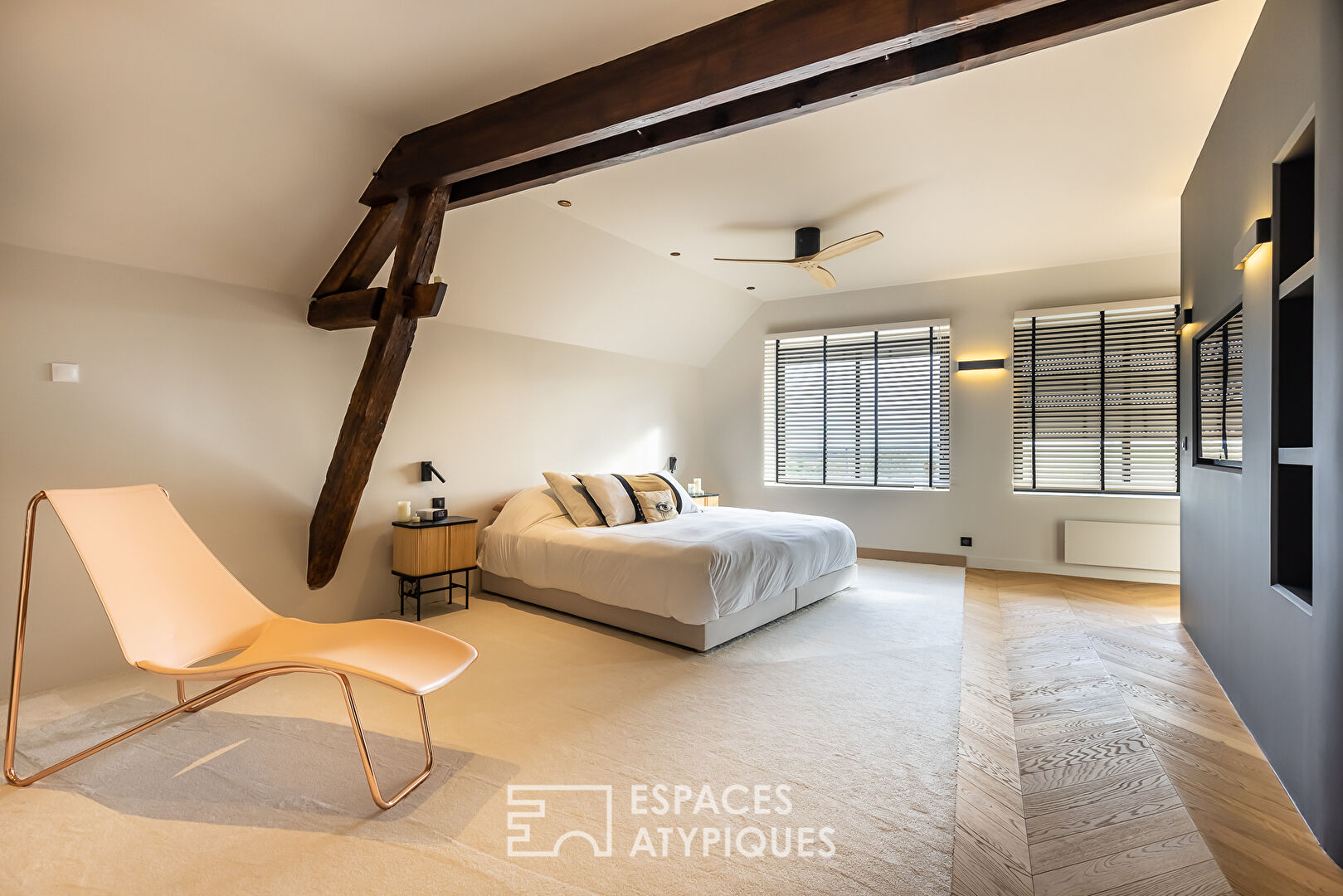 In the heart of nature, just ten minutes from Auxerre, and fifteen minutes from Chablis and its vineyards, this old farmhouse has kept its character while benefiting from an exceptional renovation.