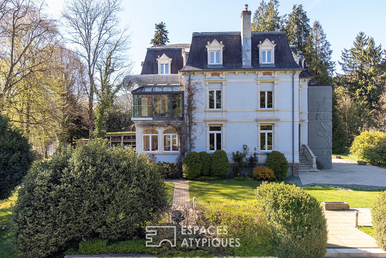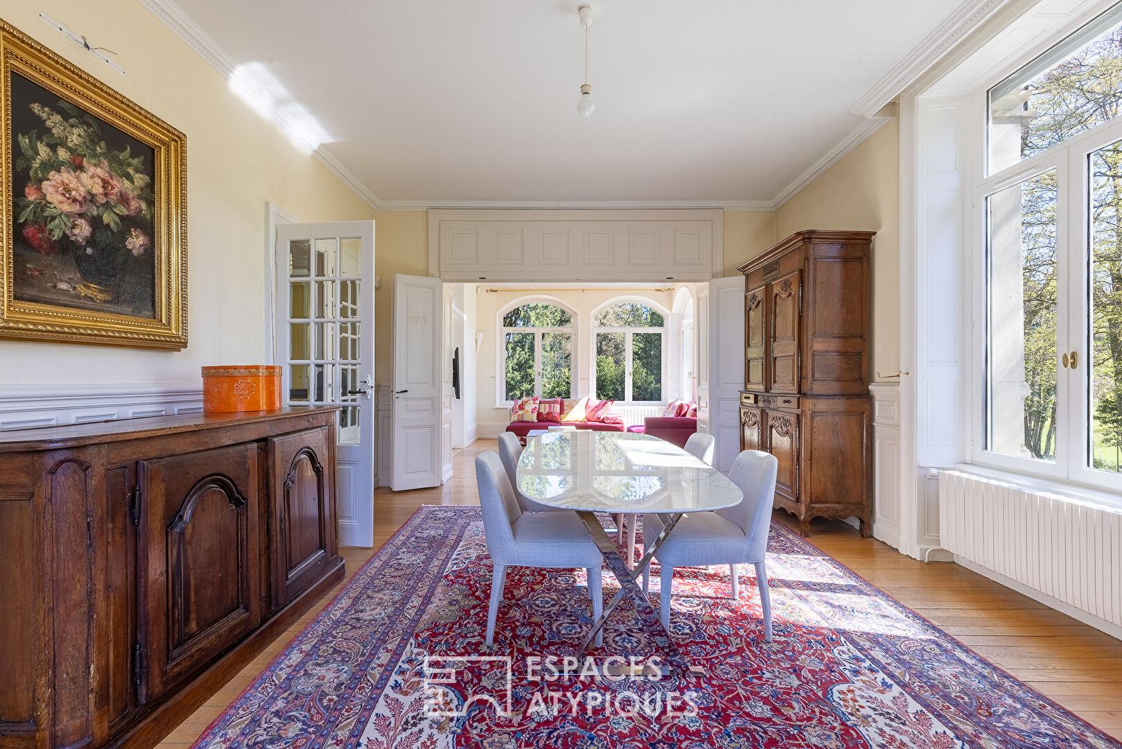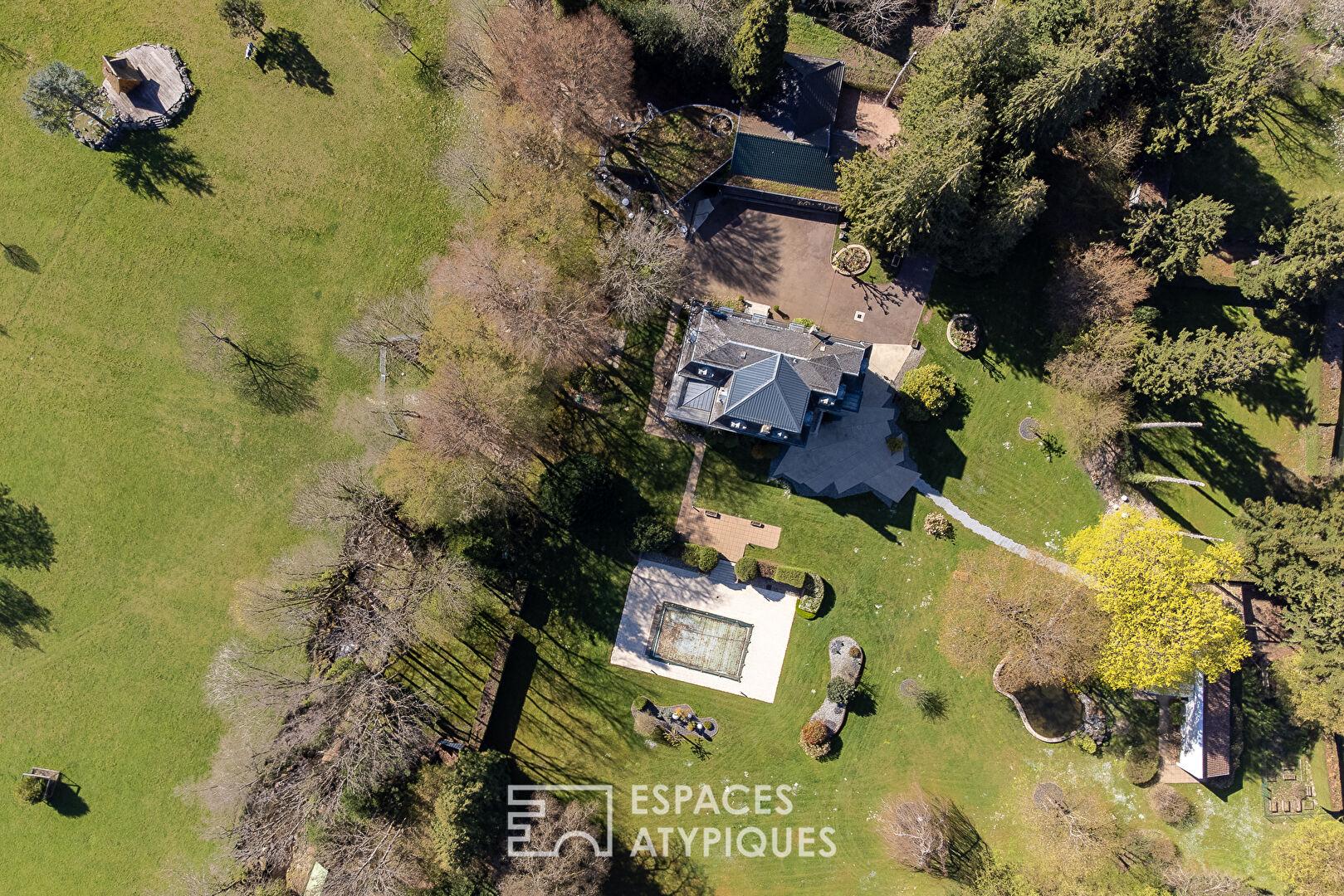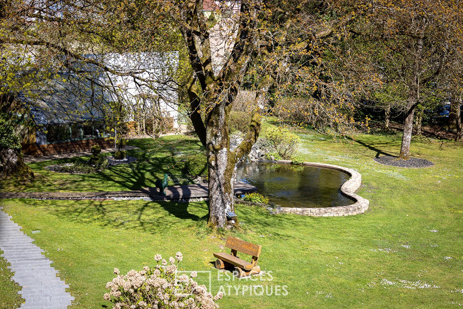 Nestled in a pristine natural setting, this exceptional property sits on over four hectares of land, offering a remarkable landscaped setting with a swimming pool, pond, orchard, greenhouse, and direct access to the river.