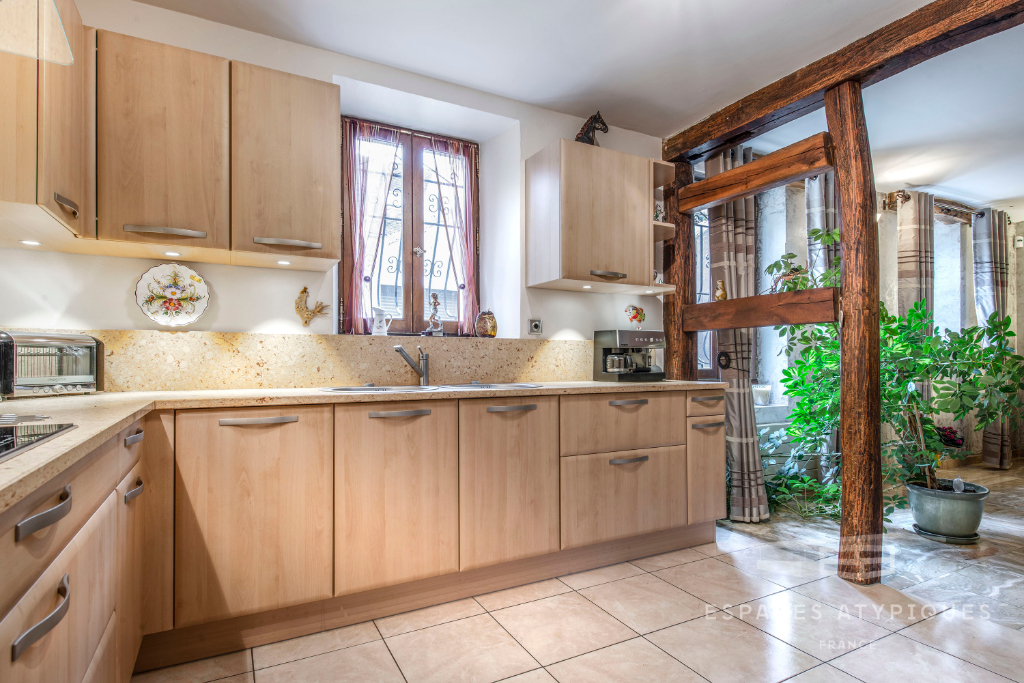 One hour from Paris, this house is located in a sought after village near Milly la Forêt. With a living area of approximately 130sqm, it is erected on a walled plot of 465sqm hidden from view. It is organized on three levels, with two access including covered access. The ground floor consists of an entrance, an office with laundry area followed by a kitchen open to a dining room. A first staircase leads to the ground floor which offers a bright living room followed by a bedroom and a bathroom. The second staircase leads to the sleeping area with two large bedrooms, one currently converted into a dressing room. An outbuilding of about 30sqm with a beautiful vaulted cellar and two parking spaces leave opportunities for development. An independent garage with motorized door and equipped with a plug for electric vehicle completes this good (independent of the house). This property is tastefully decorated, located in a quiet street and not overlooked is nice and functional for a second home or main. Sophie Brion Candel RSAC Melun 841 267 867