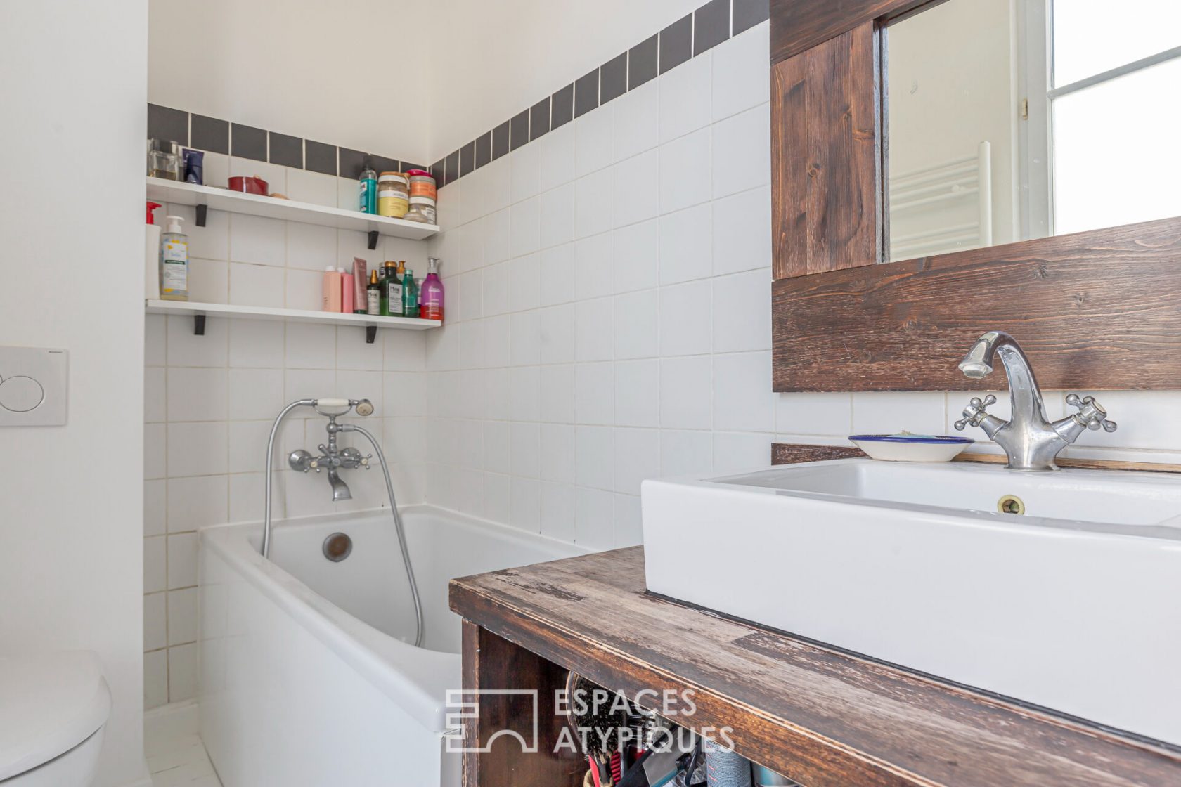 A few steps from the historic center of Bagneux and close to all amenities, this inverted house of 100 m2 arranged in a cascade offers a terrace and a garden totaling around one hundred m2.