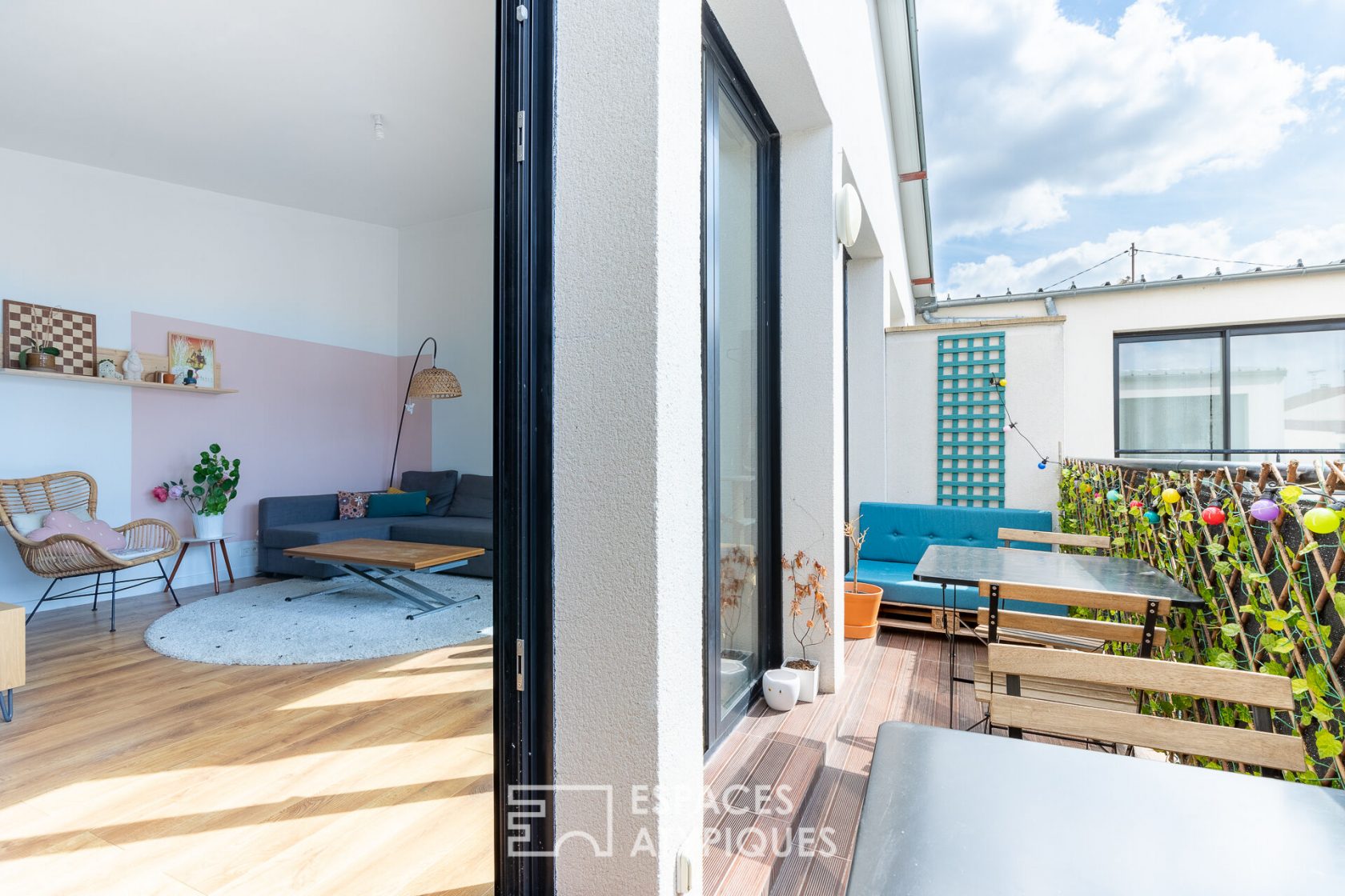 In a quiet area and close to all amenities, this 115 m2 (112 m2 Carrez) duplex with a south-facing balcony, is like a house in a recent and well-maintained co-ownership.