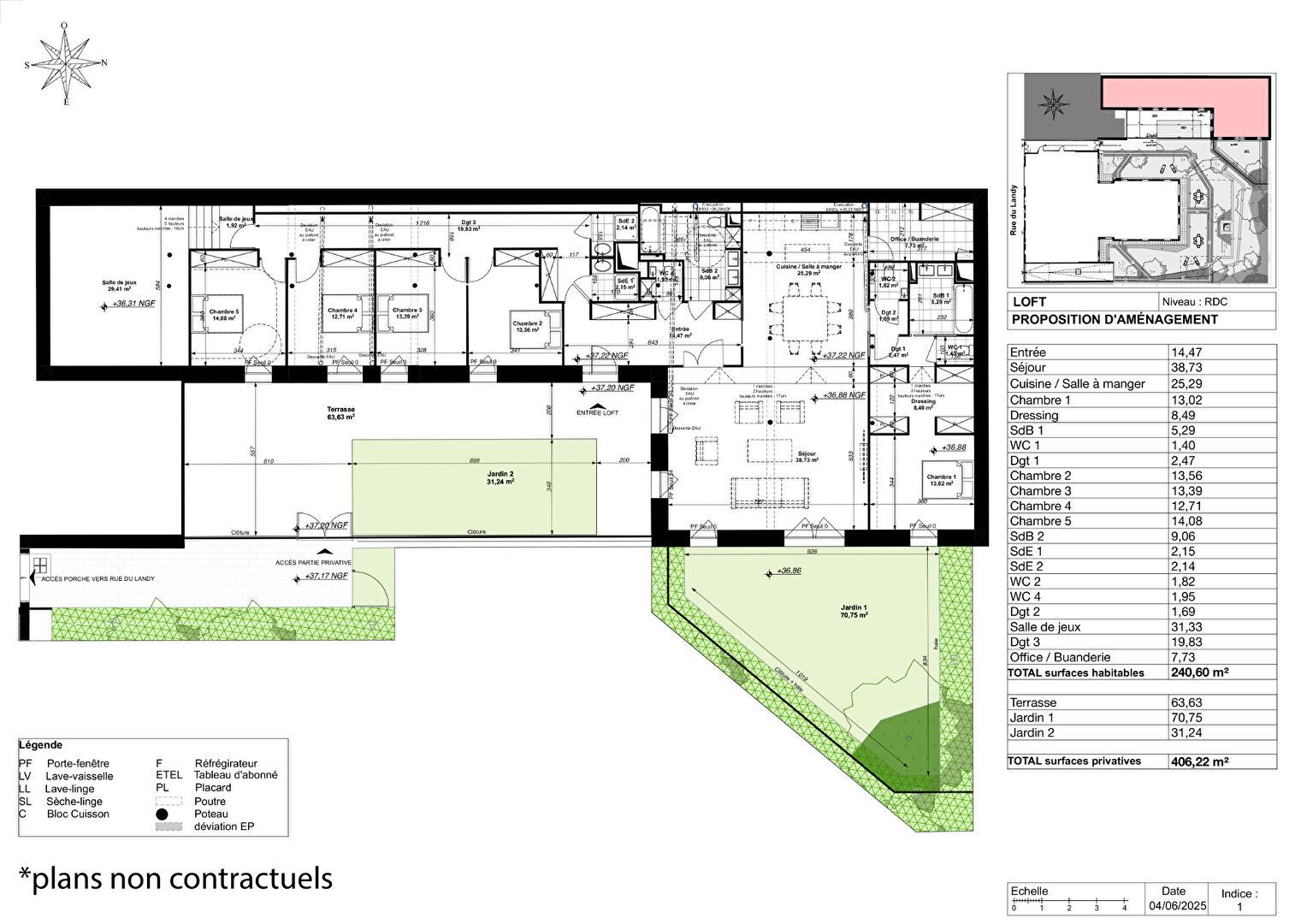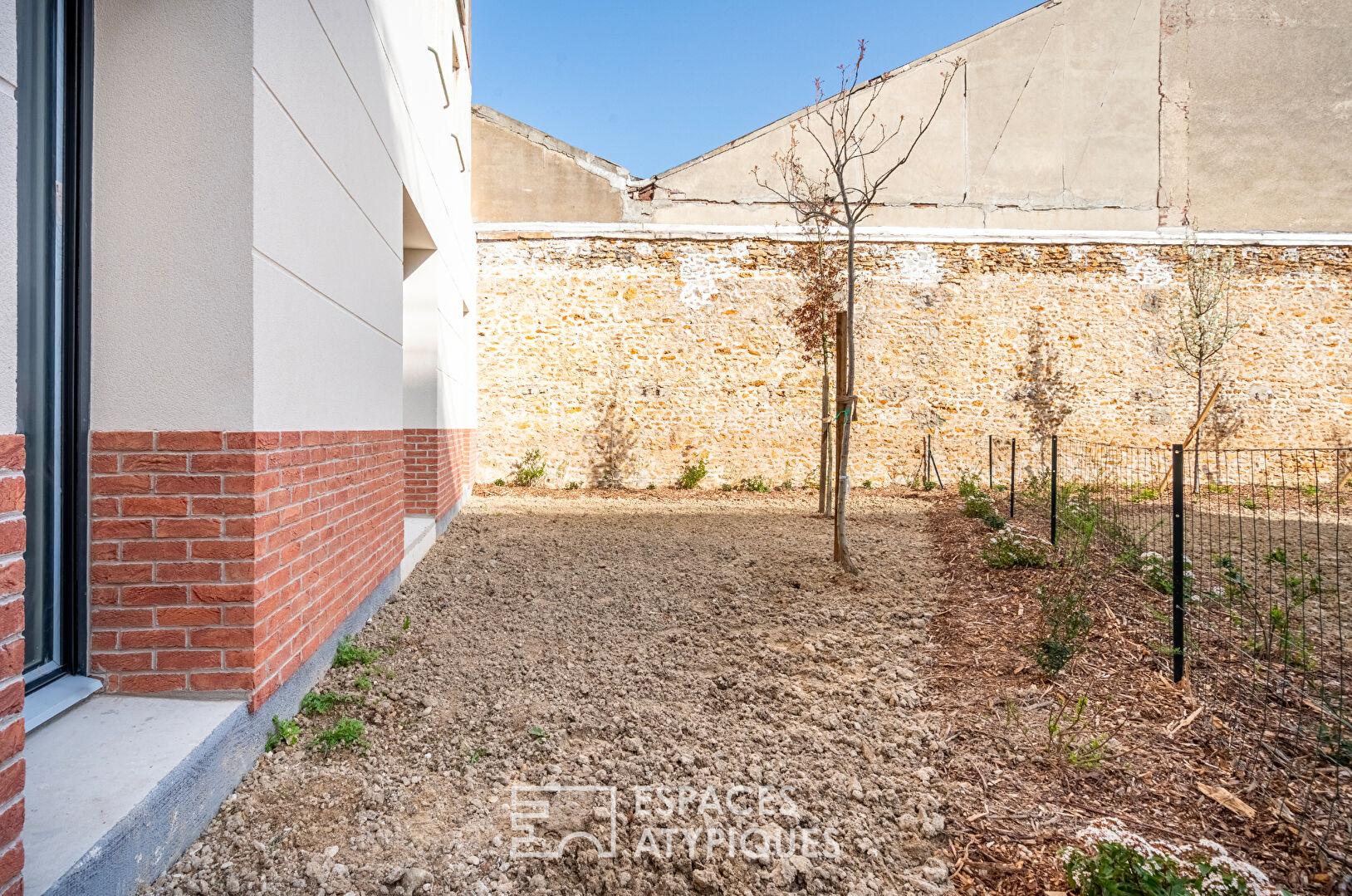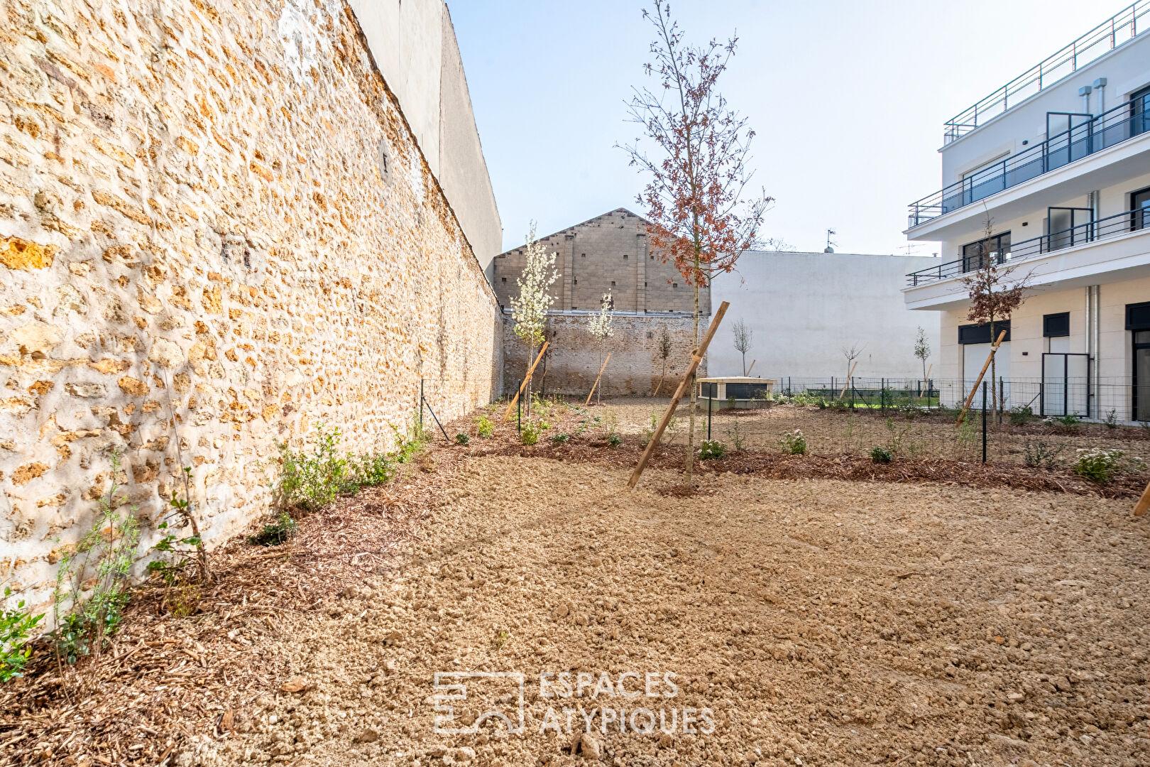 Extended by a 63 m² terrace and a 102 m² private garden, this unique space combines the charm of a generous exterior with the creative freedom of a fully modular interior.