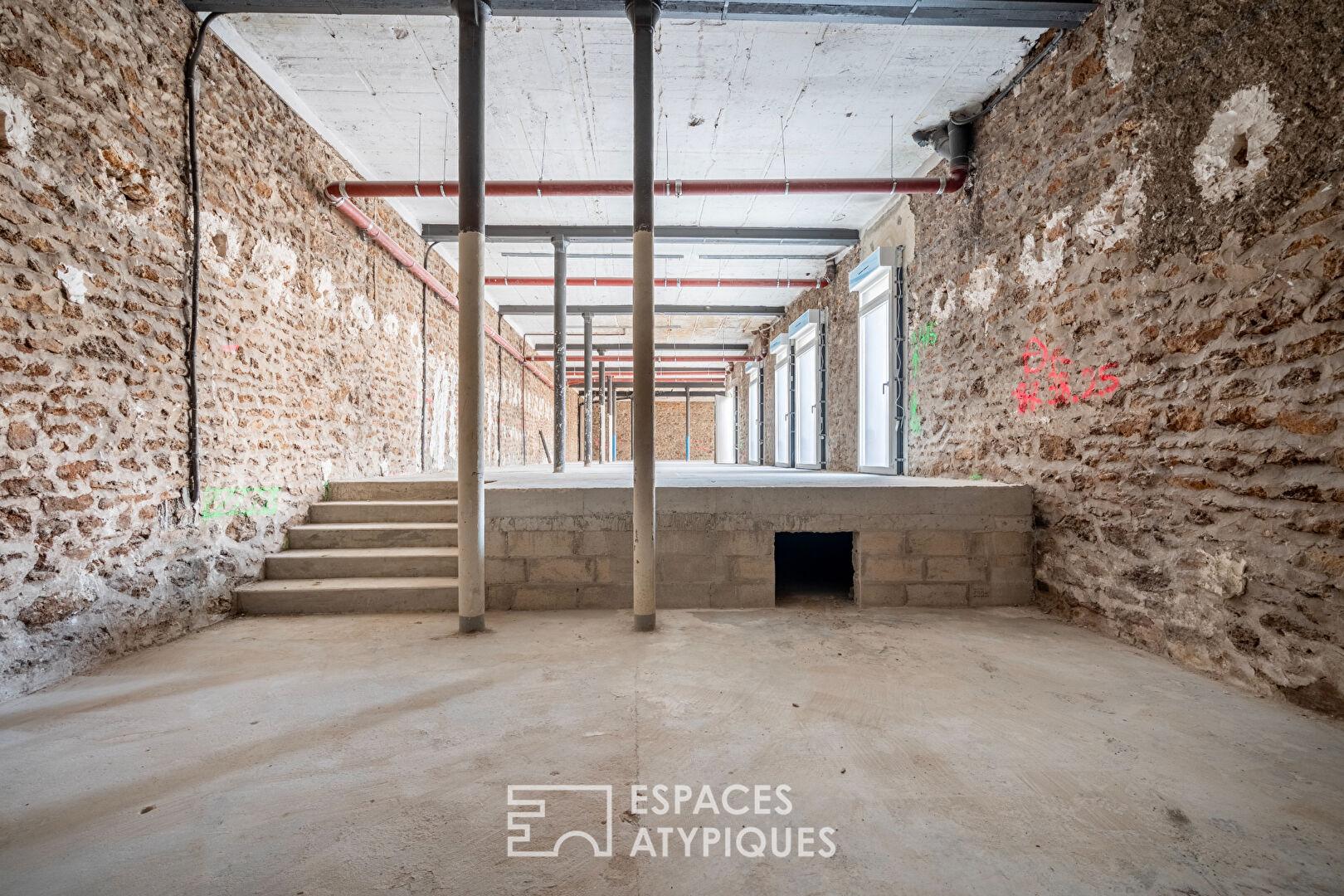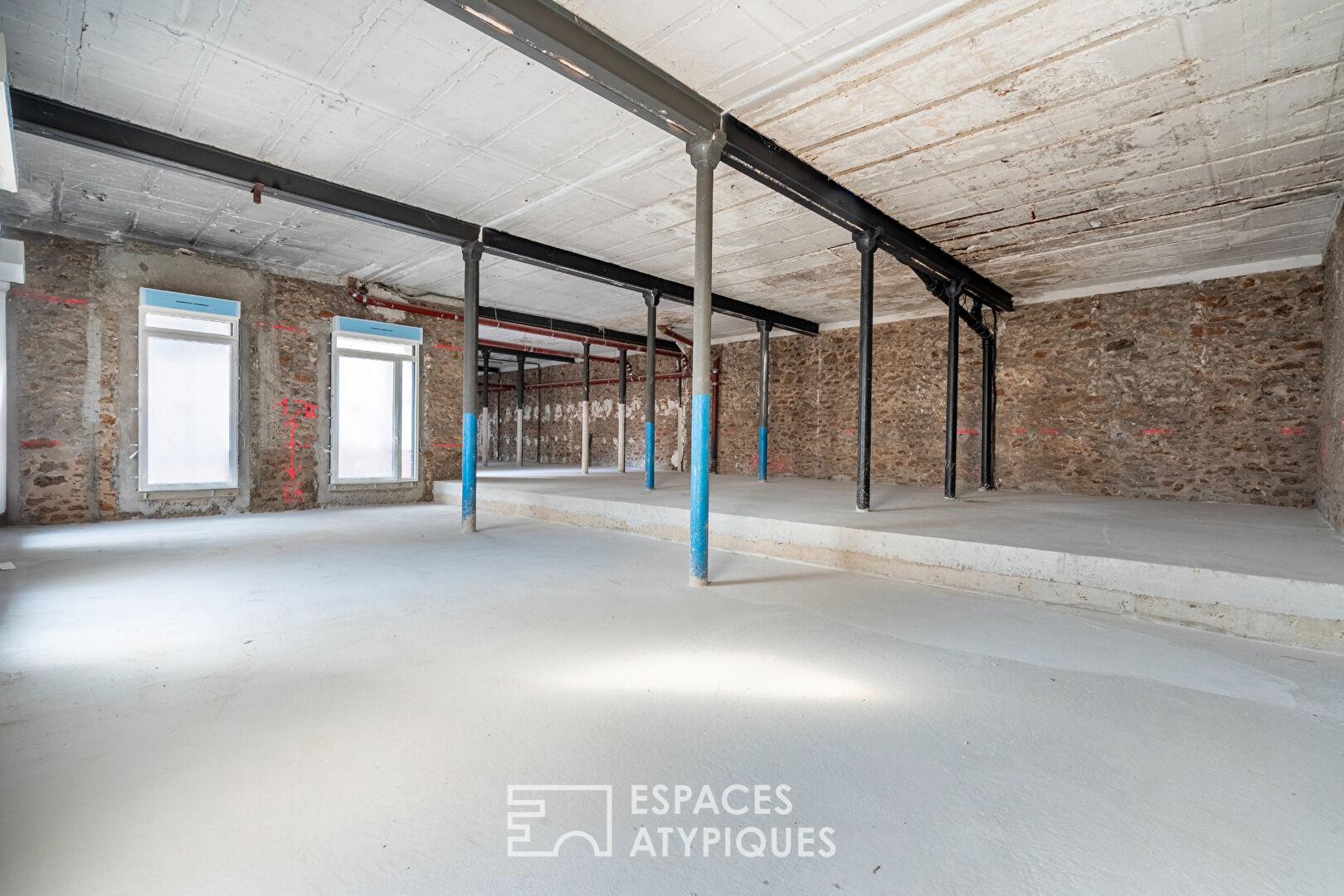Between the Saint-Denis Canal and Aubervilliers Town Hall, sheltered from the hustle and bustle of the city, nestled in the tranquility of a backyard, this 240.60 m² unfinished loft offers the freedom to imagine a fully personalized layout, adapted to every need.
