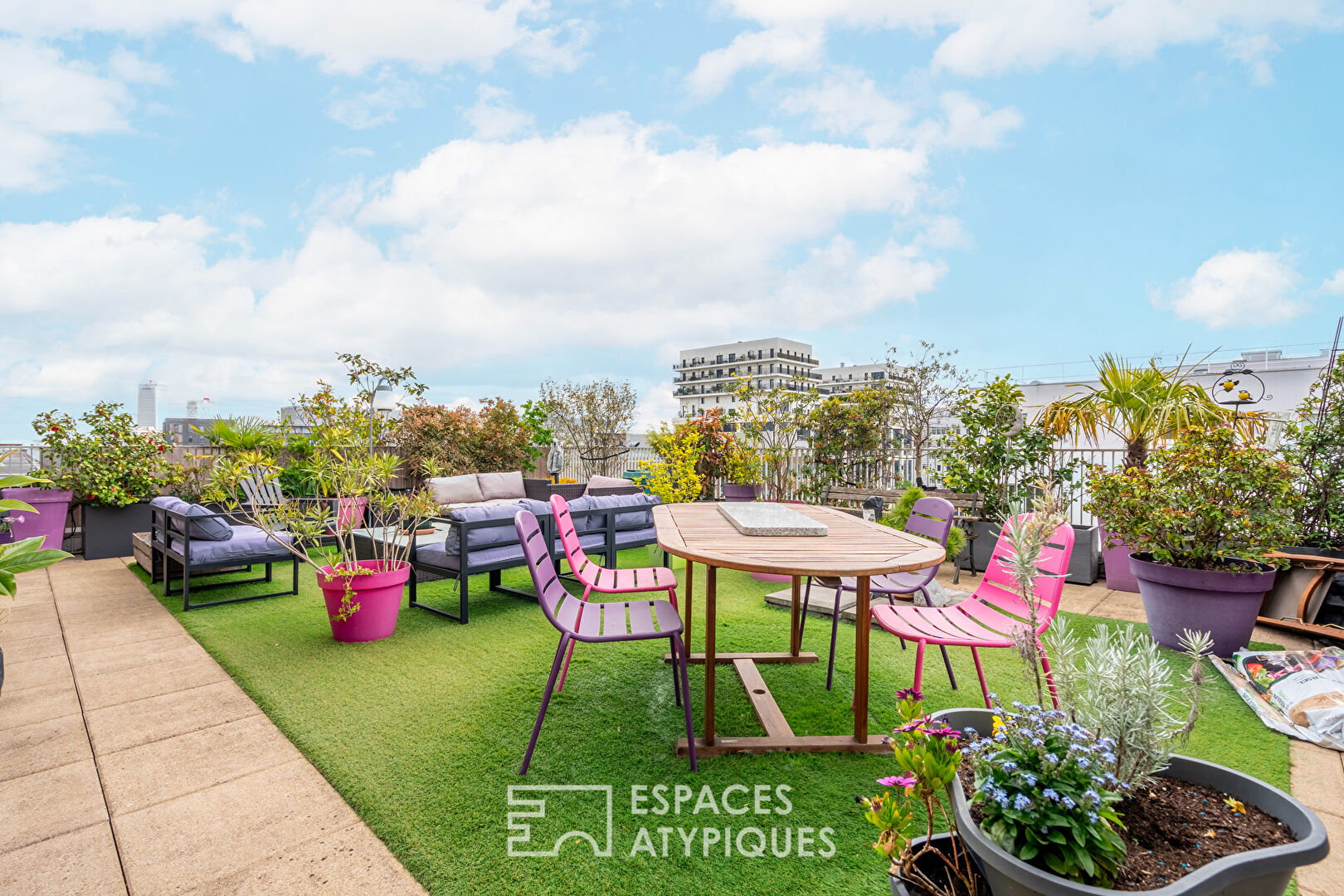 Ideally located between the Communale and the Grand Parc des Docks, this recent 108.81 m² (Carrez law) apartment boasts a 69 m² (69 m²) sky terrace on a high floor and enjoys triple exposure.