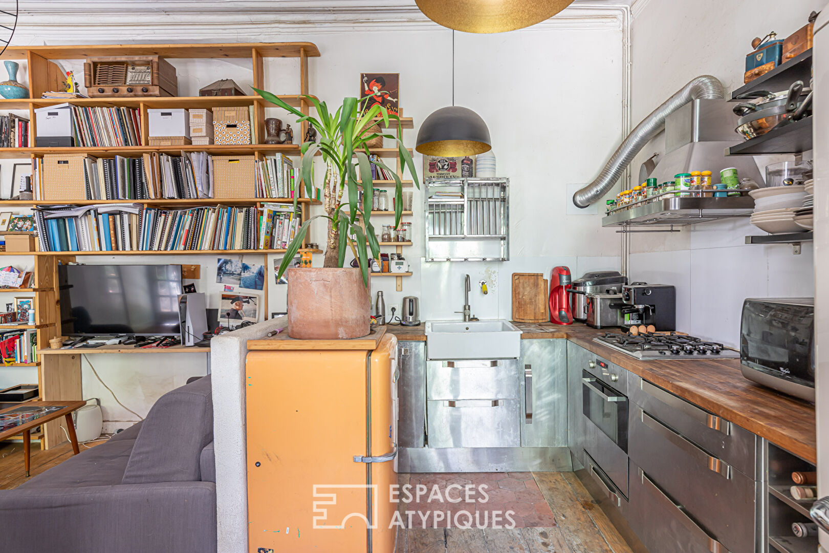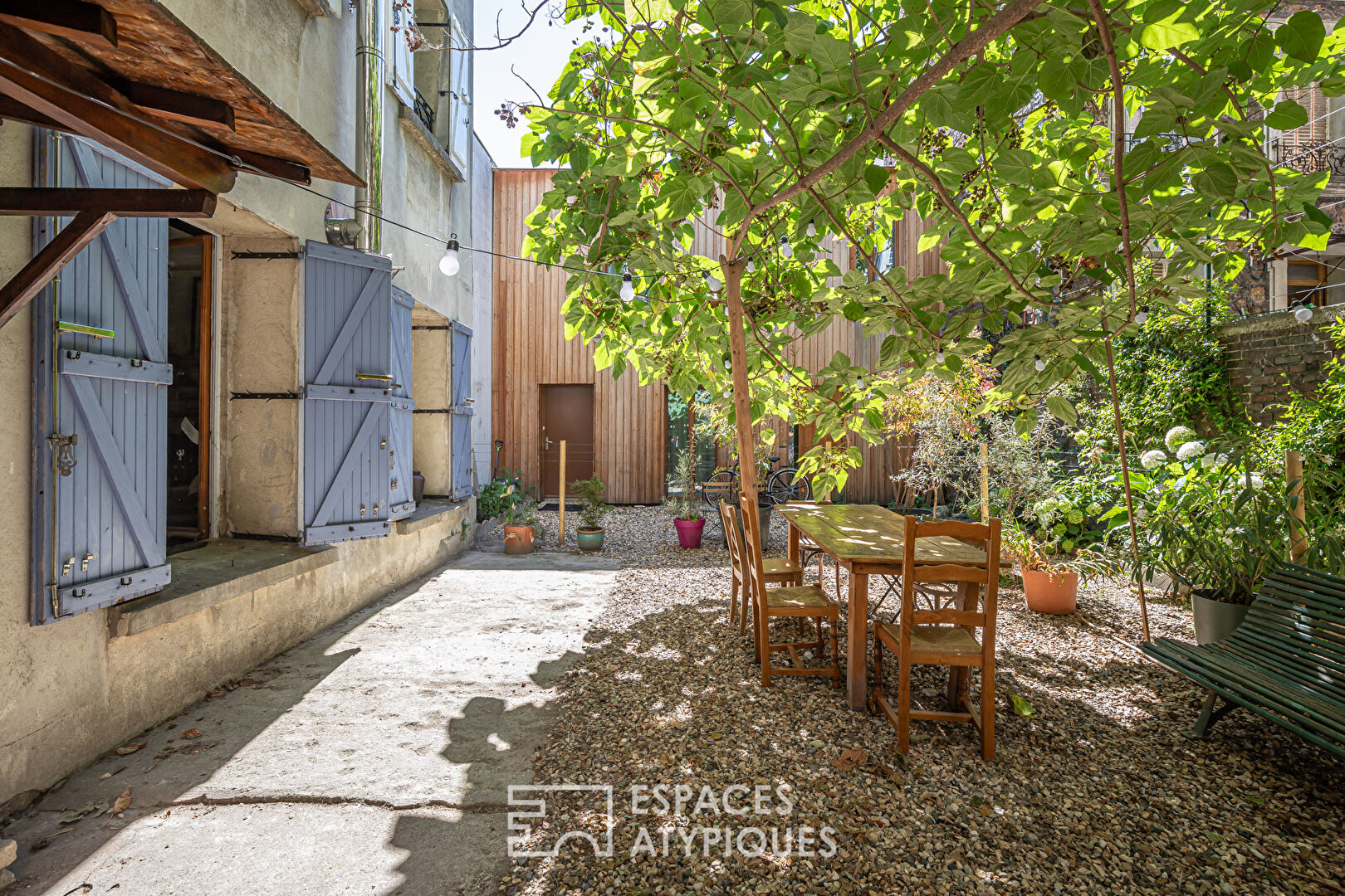 Near Paris between La Villette and Parc Diderot, this 65m2 house (63.69m2 Carrez) is located in the backyard of a building and benefits from a wooded garden of around 80m2.
