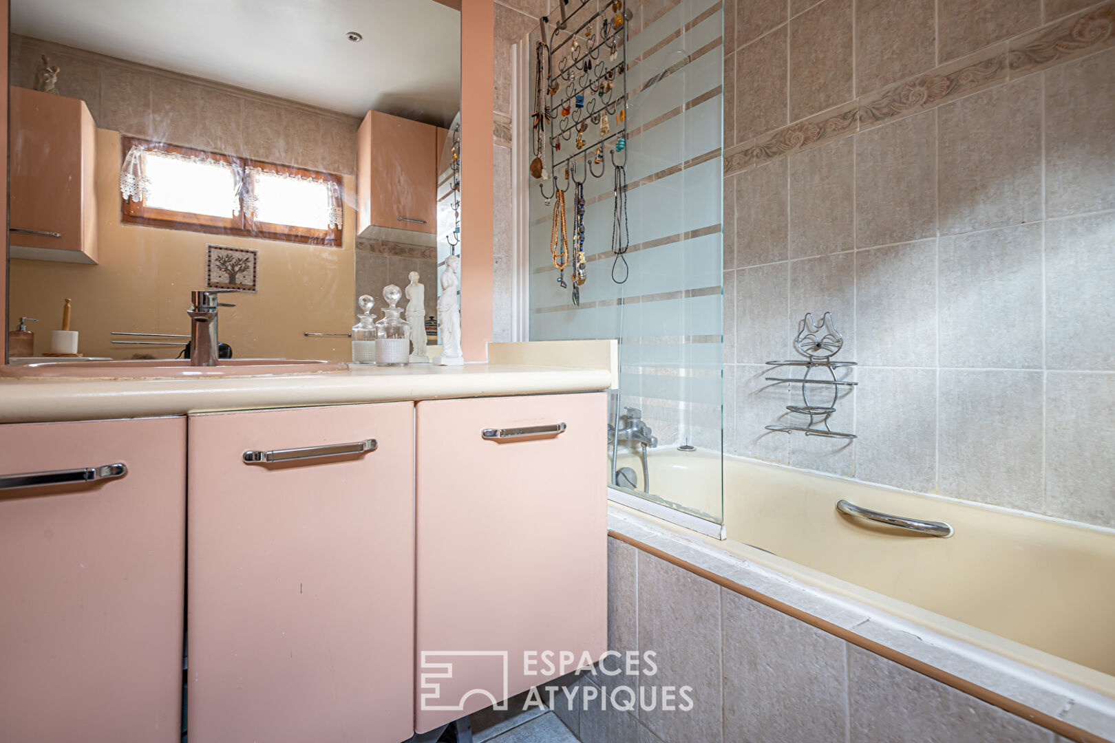 Located in a residential area of Pantin on the edge of Les Lilas, this 1930s worker’s house of 93m2 with winter garden is decorated with a courtyard of around 50m2 and an independent studio of 11m2 not adjoining that looks like a small House.