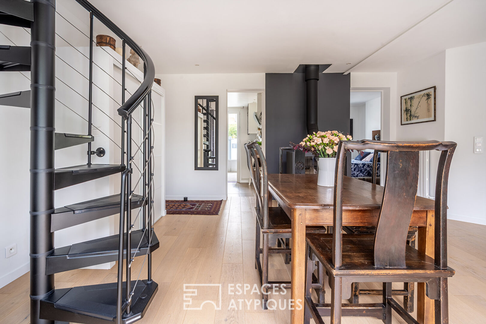Located along the Canal de l’Ourcq, in a quiet and sought-after neighborhood, this fully restored 120 m² house subtly combines old-world charm with resolutely contemporary architecture.