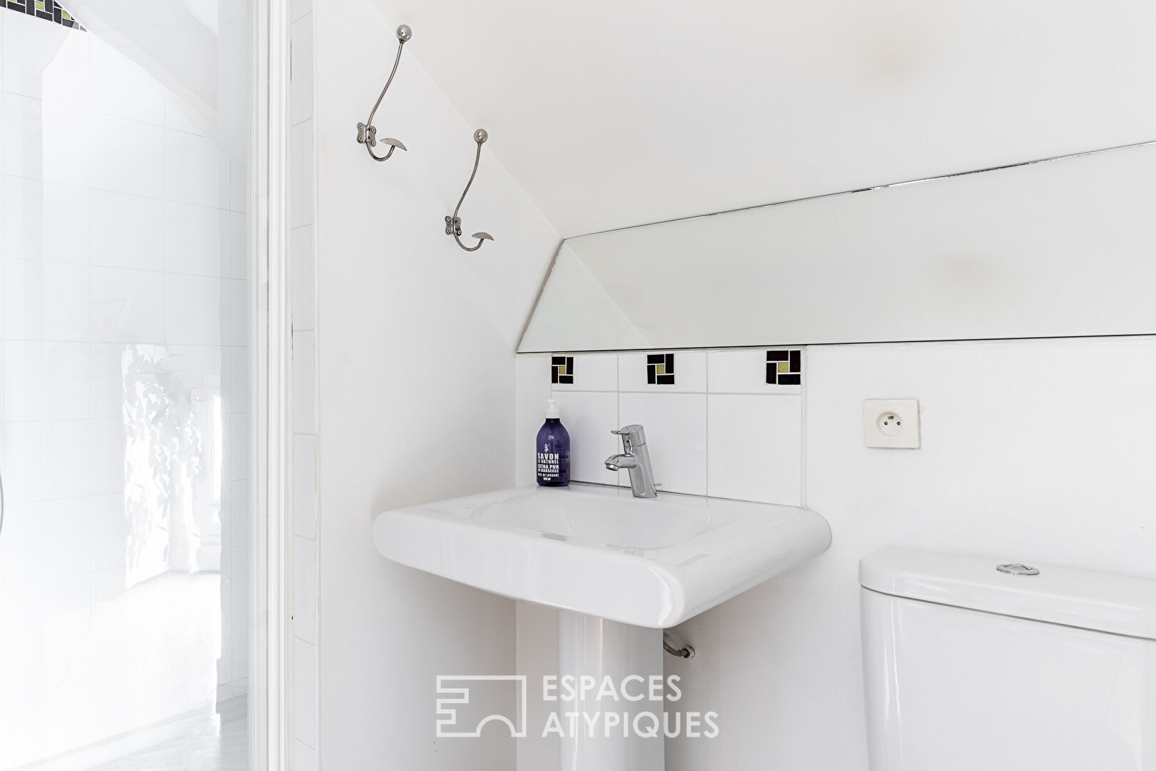 Some places are full of nuggets. Créteil is one of them. It is in the heart of the popular residential district of Champeval, a few minutes from the metro and the famous shopping street of Créteil village, that this family house, completely redesigned and fitted out by an architect, is located. The entrance to this detached building of 187 m2 is at the end of an alley. A terrace, which faces a garden planted with rare calm and luminosity, promises sunny lunches on the arrival of fine weather. A contemporary veranda, conducive to relaxation and reading, fits perfectly into the architecture of the house. On the ground floor, there is an open living room with multiple architectural details and a large kitchen. A staircase with Cycladic influences leads to a basement with windows which offers a living space free of any interpretation. Music room, game room or office, the possibilities are endless. On the first level, a sleeping area leads to two spacious bedrooms and a bathroom. The link to the top floor is naturally via a corridor leading to a dressing room. A large, intimate and bright master suite, accessible by a custom-designed wooden staircase and benefiting from its own bathroom, is nestled under the roof. Parents of teenagers, liberal activity or follower of rental profitability, an independent house of 40 m2 located at the bottom of the garden will only sublimate the whole. This outbuilding consists of a bedroom with French window onto the garden, a living room that can be used as a work room, a kitchen and a shower room. A garage and two clay cellars, ideal for wine lovers, are added to the amenities. The set is impeccable and requires no work. It is often difficult to reconcile calm and serenity with city euphoria and proximity to transport. Here, everything comes together to offer an incomparable quality of life a few minutes from the capital. ENERGY CLASS: D CLIMATE CLASS: D Estimated average amount of annual energy expenditure for standard use, based on energy prices for the year 2021 between: 2300 euros and 3400 euros. Metro line 8: Créteil university: 5 min walk Shops Créteil Village: 10 min walk Schools: 10 min walk Contact: Mélanie 07 69 44 20 88 – Commercial Agent – RSAC: 907 896 245 Bobigny