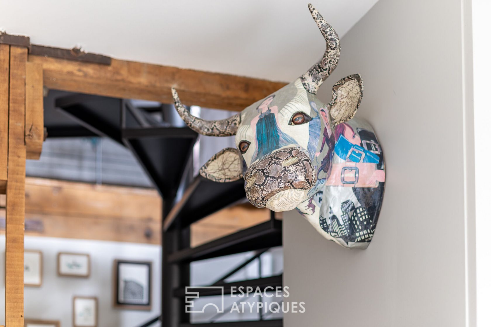 Located on the banks of the Marne, in a wooded district with the warm atmosphere of Joinville Le Pont, in the heart of a former industrial building, this loft with exceptional volumes designed by an interior designer develops a total surface area of 132m2 (125.78m2 Carrez), spread over 3 levels.