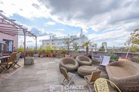 Its optimized layout allows to have on one side a beautiful reception with a living room and a fitted kitchen, opening directly onto the terrace. On the other side a sleeping area includes a bathroom and three bedrooms each with access to the terrace. The unobstructed view, the exceptional terrace and the family plan make this rooftop a unique property on the market.