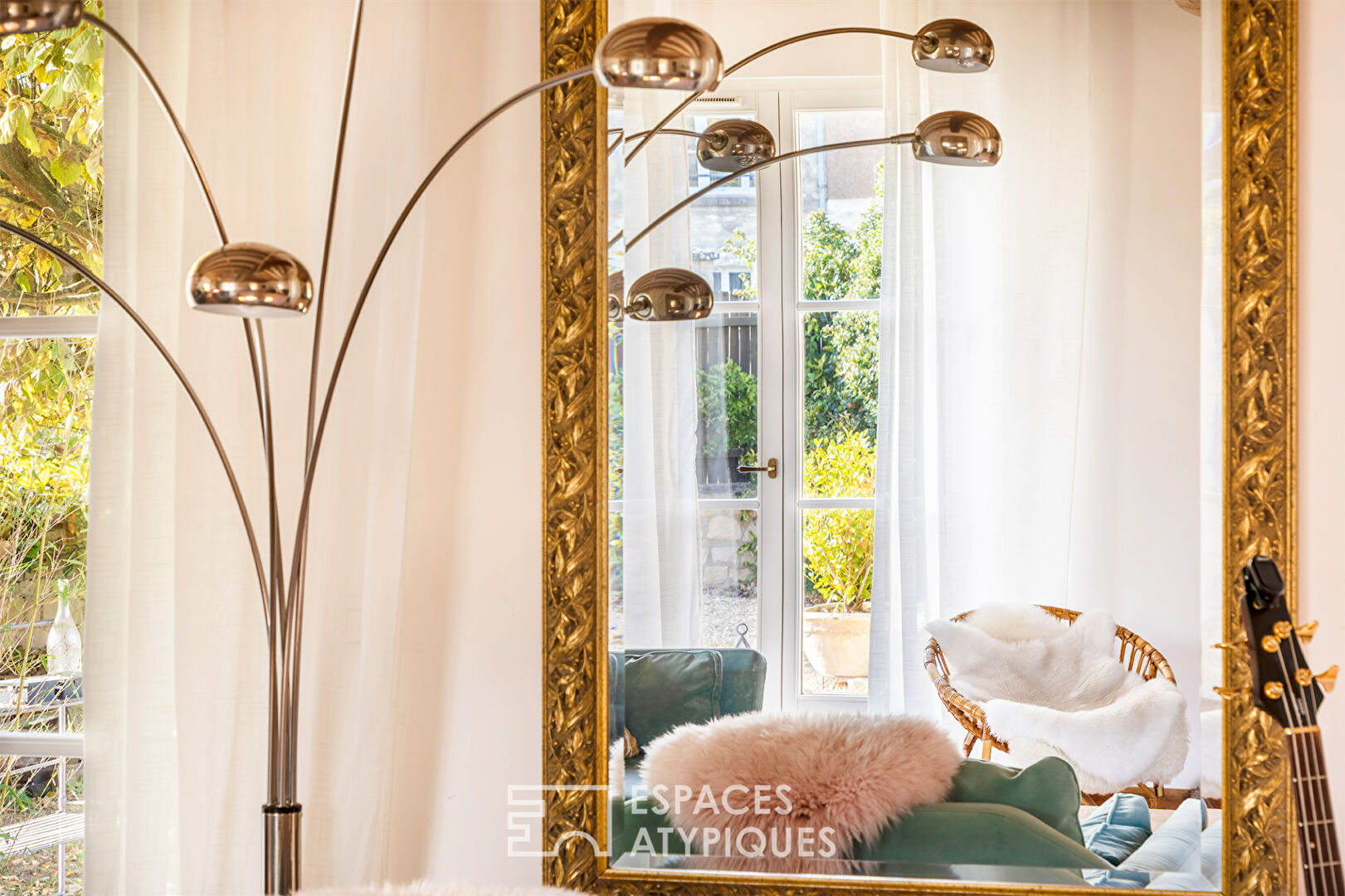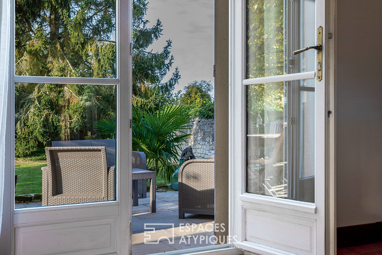 Located two minutes by car from Magny en Vexin, in a pretty typical village in the Vexin Natural Park, the name of this pleasant property of more than 180 sqm naturally came to the Espaces Atypiques adviser when admiring the beautiful garden of 1200 sqm. sqm where cedar, magnolia, various trees compete and where, lulled by the rays of the October sun, a squirrel jumped from tree to tree. This property, completely redesigned by the architect Gautier in 2007, inspires tranquility and serenity.
