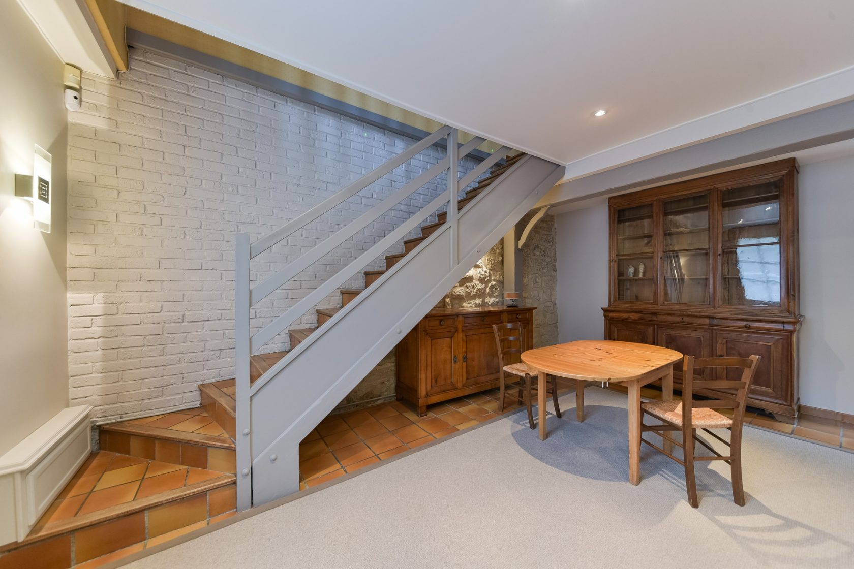 The old single storey cellar, on the right wing, houses a master suite with exposed beams, its bathroom, as well as a laundry room and a large office space. T