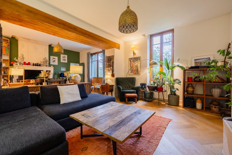 Maison familiale bourgeoise avec grande pièce de vie, jardin et proximité gare.