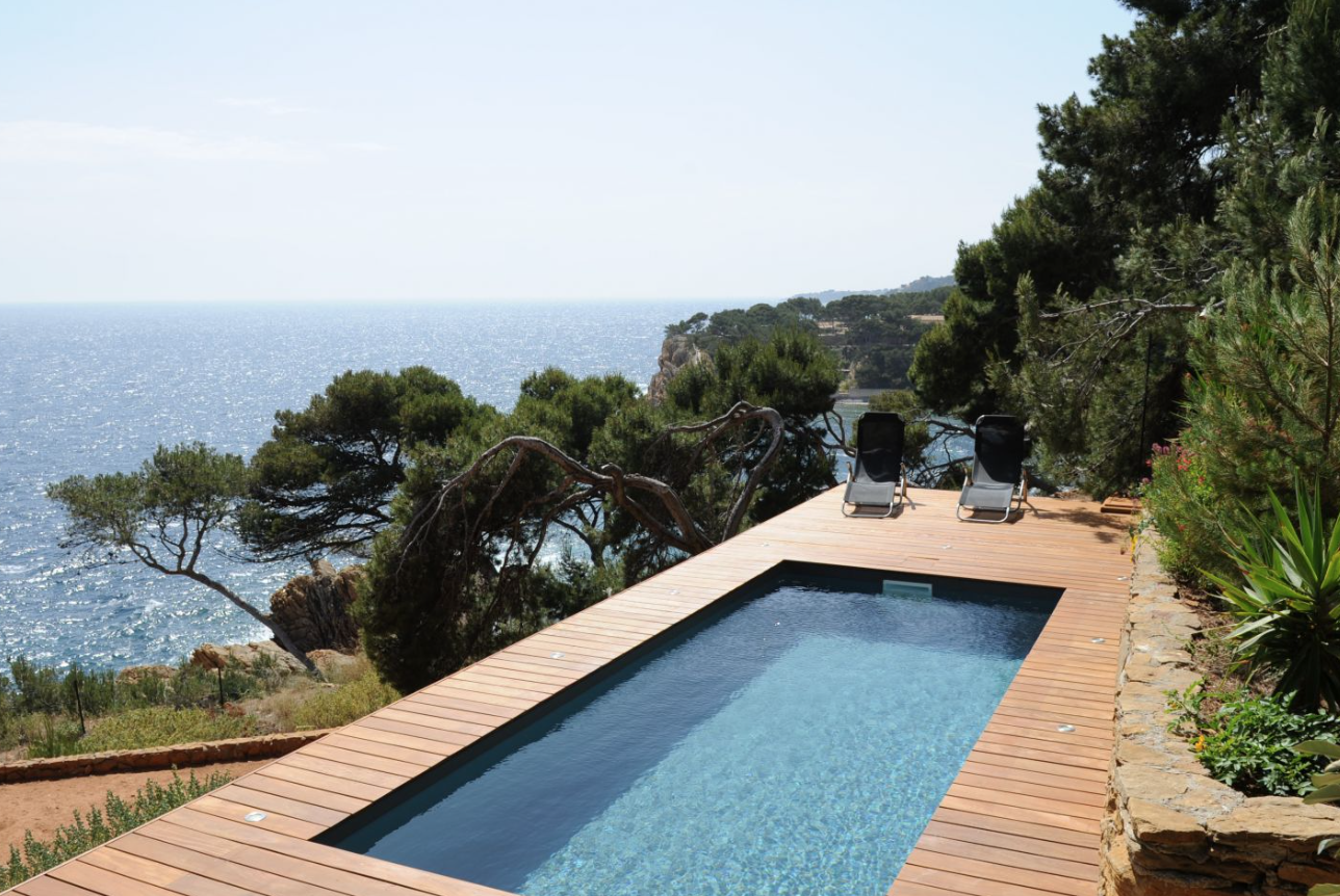 Chez Espaces Atypiques, on fond pour la ligne de nage suspendue. Une piscine comme une prouesse technique puisqu’elle est construite sur un terrain en pente. Un bassin étroit, de 10m de longueur et 3m de largeur, recouvert d’un discret liner gris et cerclé d’une terrasse en bois ipé véritable. Une piscine originale et pleine de cachet qui saura épouser les lignes de votre maison de famille, qu’elle soit ancienne ou contemporaine.