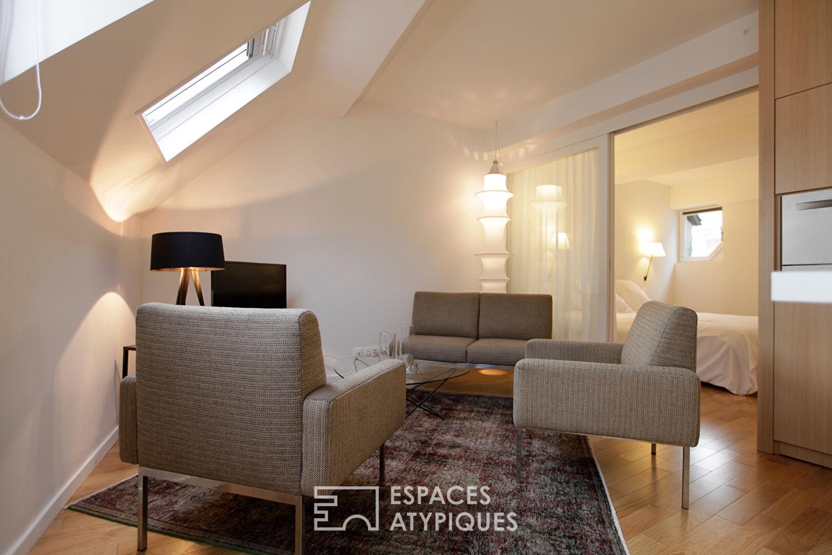 C’est un logement de charme, lumineux et astucieusement agencé.