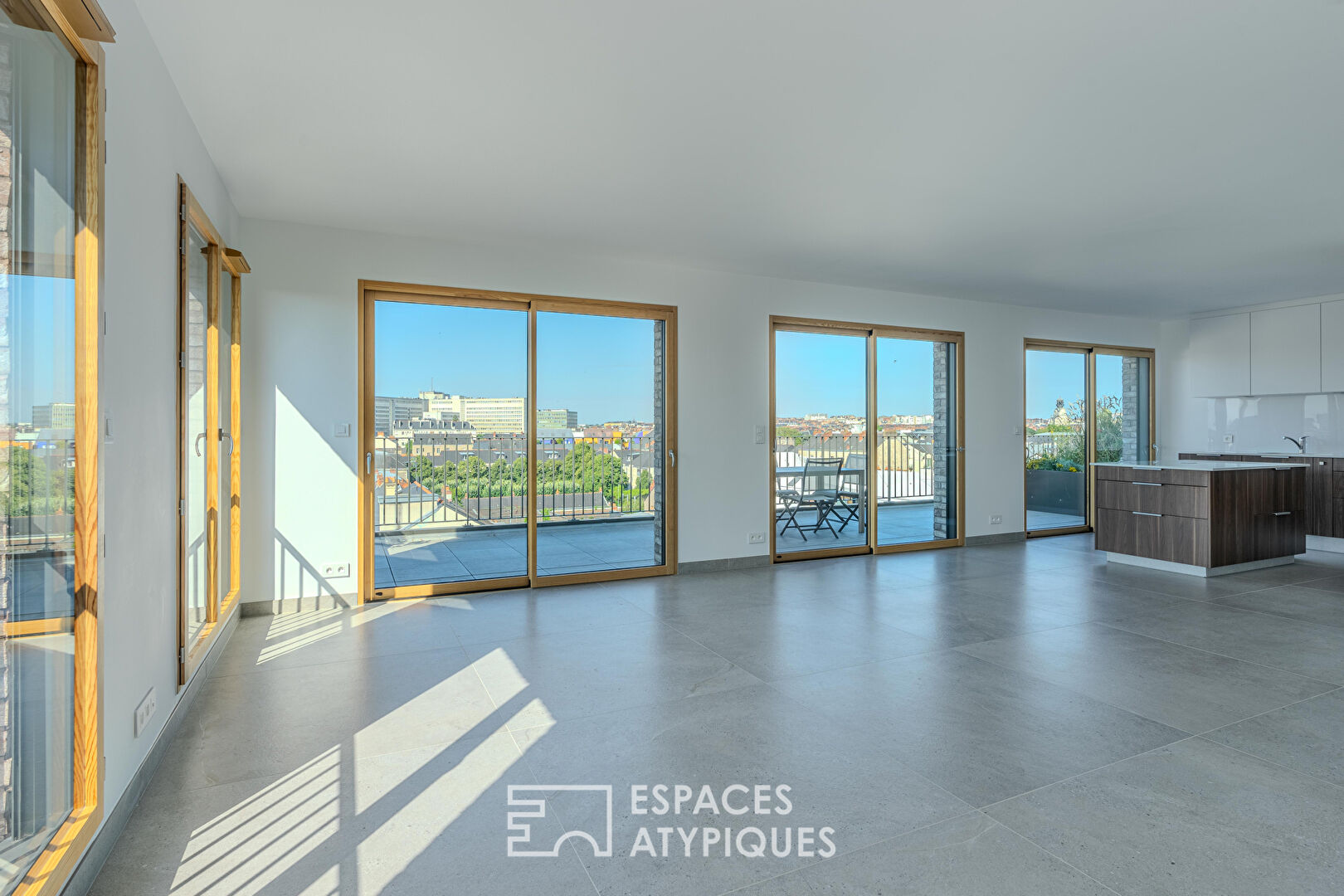 Situé dans le quartier de la cité des congrès, ce superbe appartement prend place au 6ème et dernier étage d’un immeuble de standing.