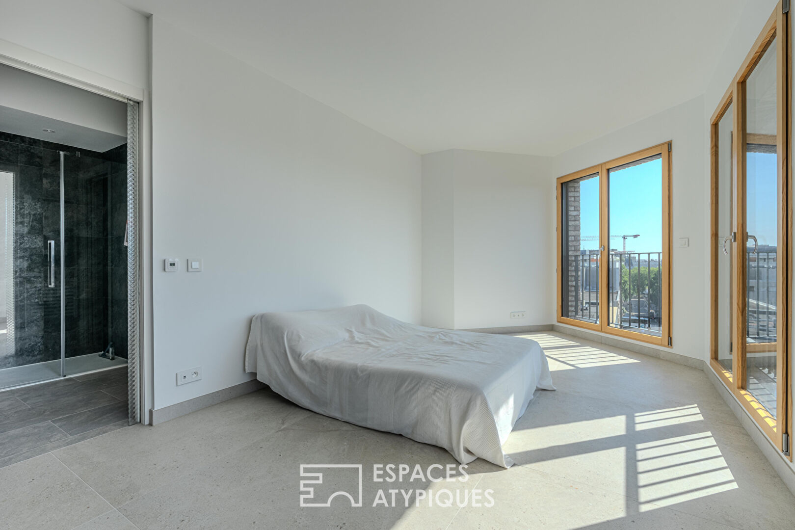 Il développe 127m2 et propose 3 chambres et deux salles d’eau. La triple exposition permet de profiter de vues imprenables sur les plus beaux monuments nantais.