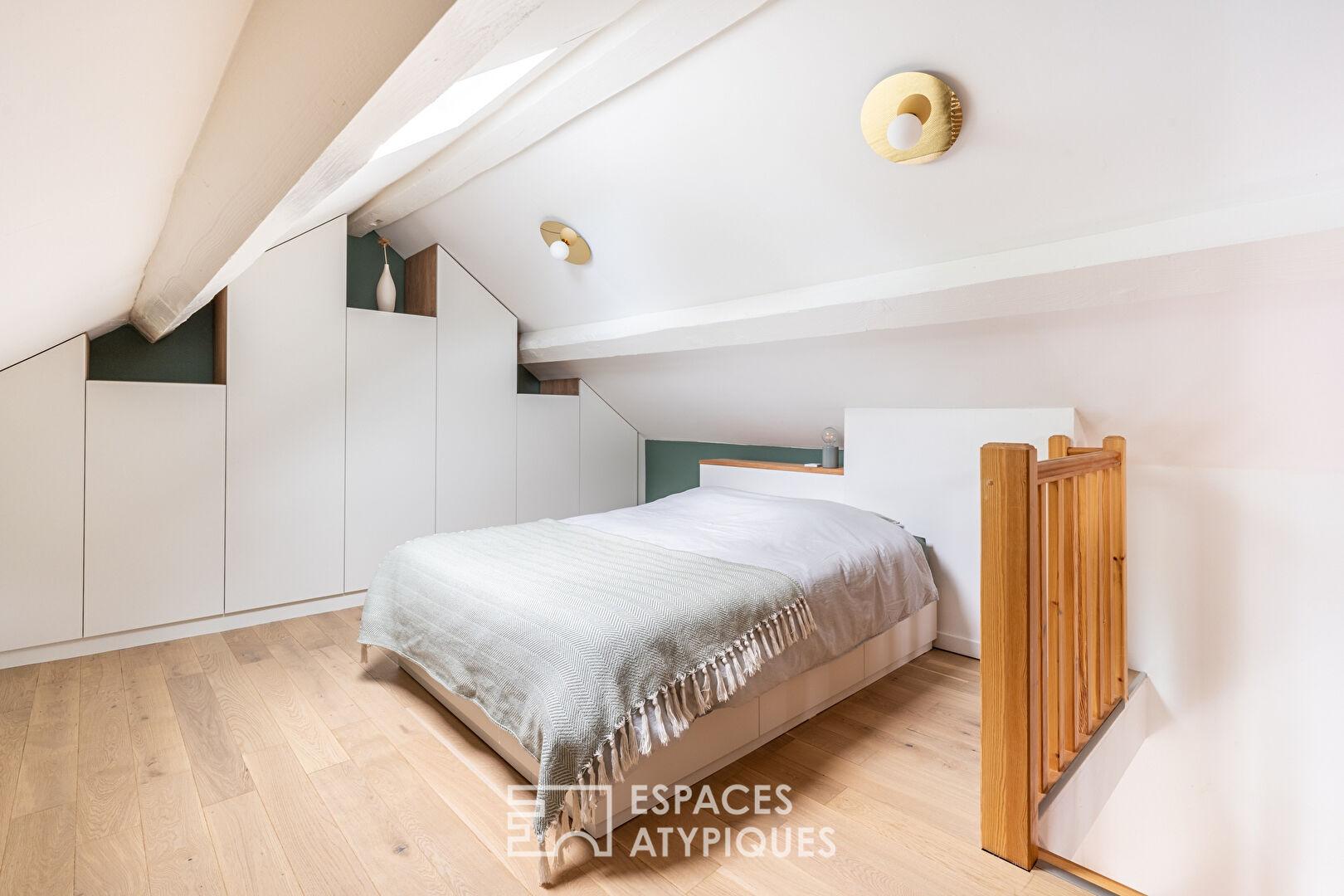 Situé à Albigny-sur-Saône, ce lumineux duplex de charme se trouve au dernier étage d’une magnifique demeure du 19ème siècle entièrement rénovée. Avec une superficie de 104m² Carrez (127m² au sol), cet appartement meublé avec goût allie charme, élégance et modernité.