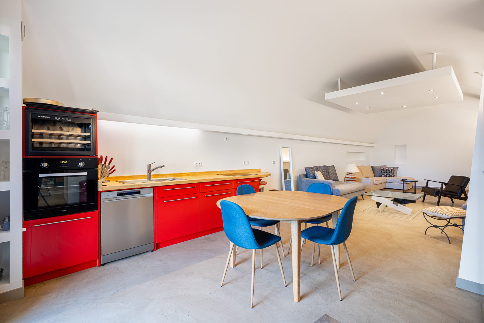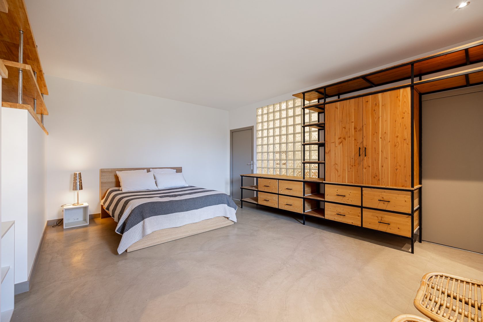 Cet appartement atypique propose une pièce à vivre de plus de 44m² (49 au sol) avec béton ciré au sol chauffé, une chambre de 25m² avec salle de bain de 8 m² et une buanderie.