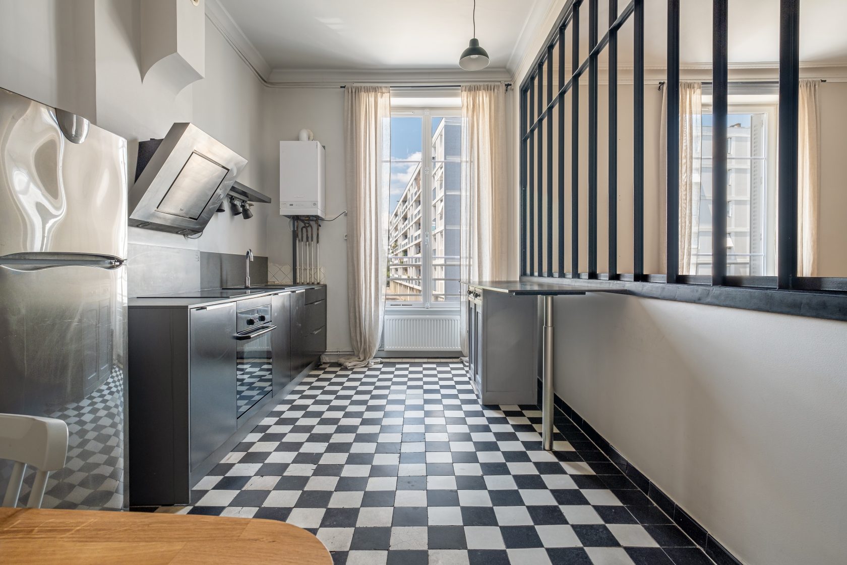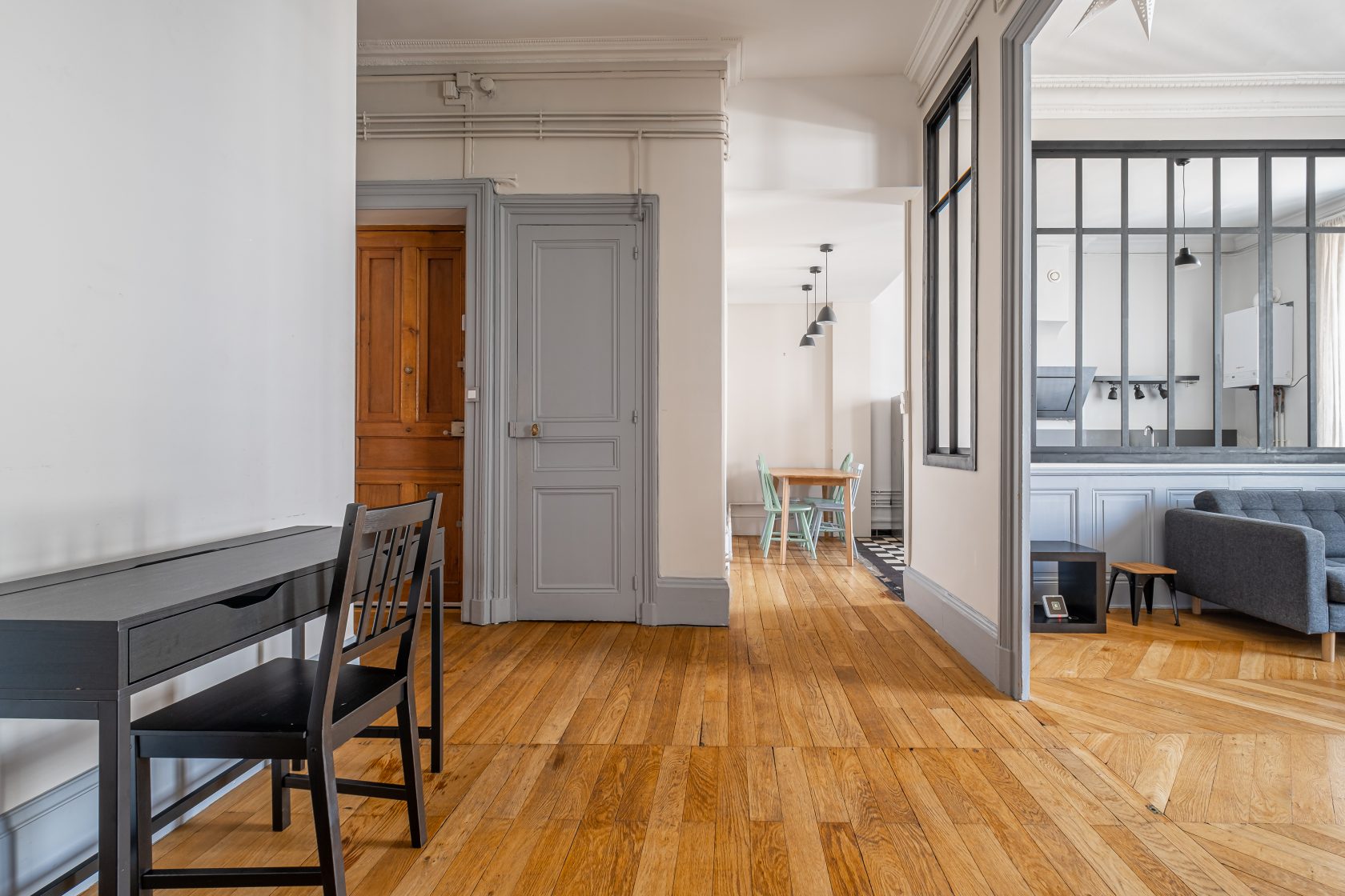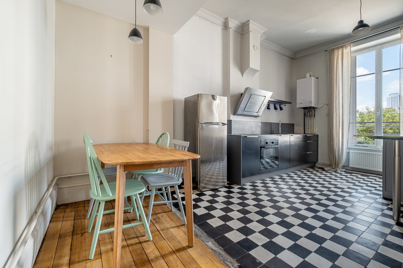 Situé dans le 3ème arrondissement de Lyon, ce grand T2 entièrement rénové prend place au 1er étage d’un immeuble ancien.