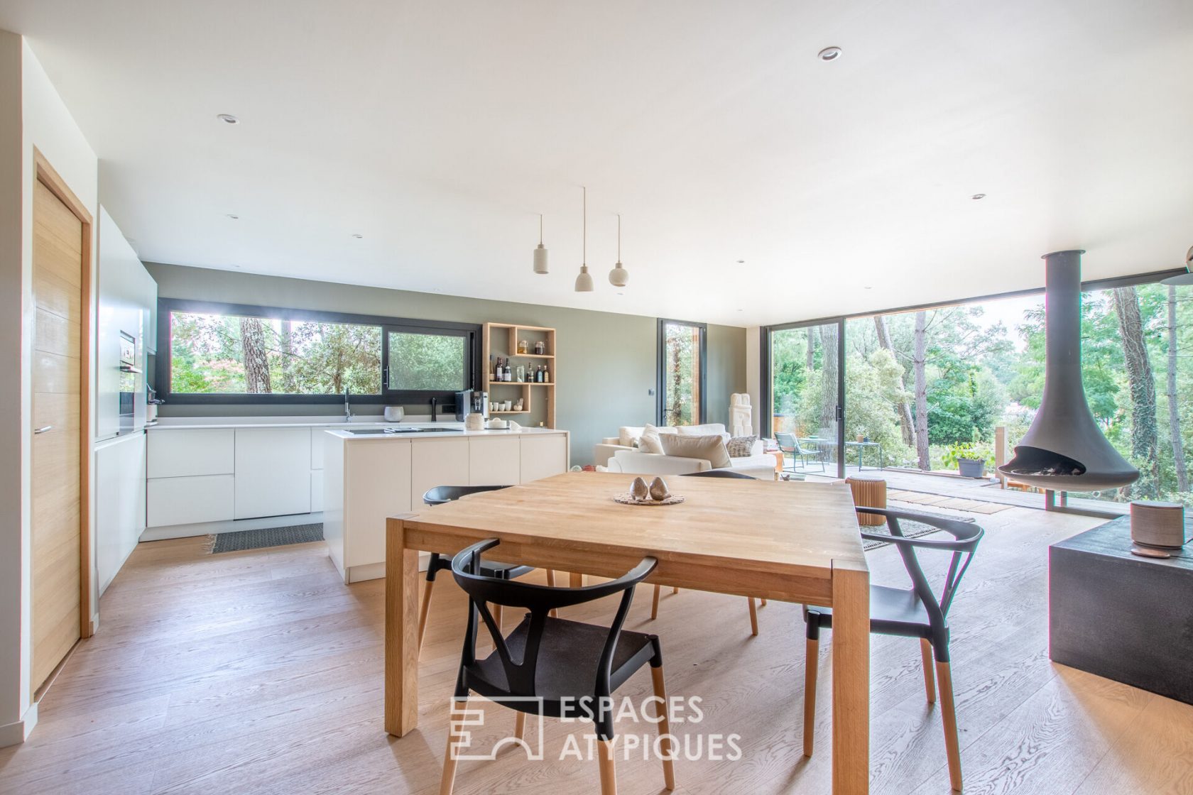 Une superbe villa en bois sur terrain boisé avec accès plage à Saint-Jean de Monts, proche de Challans et de Nantes, en vente dans l’agence Espaces Atypiques Vendée.