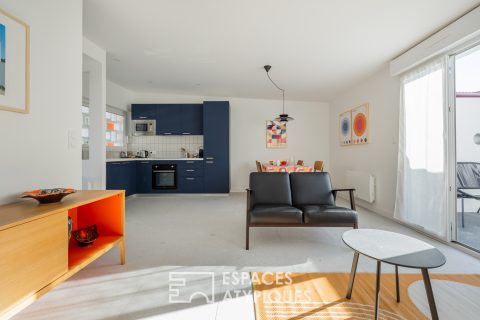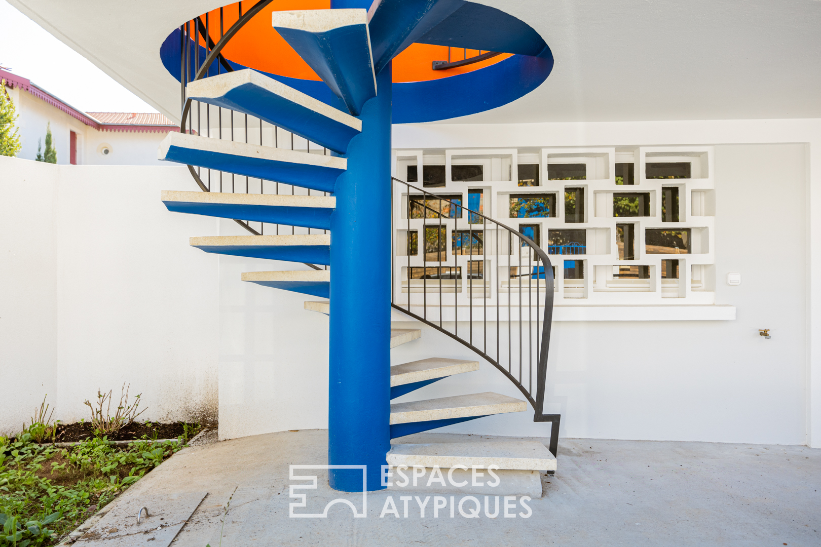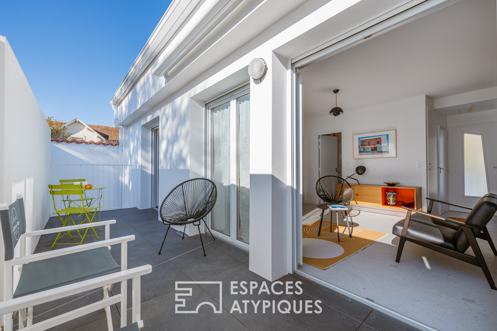 Rénovée avec minutie, la maison a conservé son charme d’origine, témoignant de l’architecture moderne du Pays Royannais des années 1950. Sa façade aux couleurs saisissantes crée dès l’arrivée une atmosphère unique et authentique.