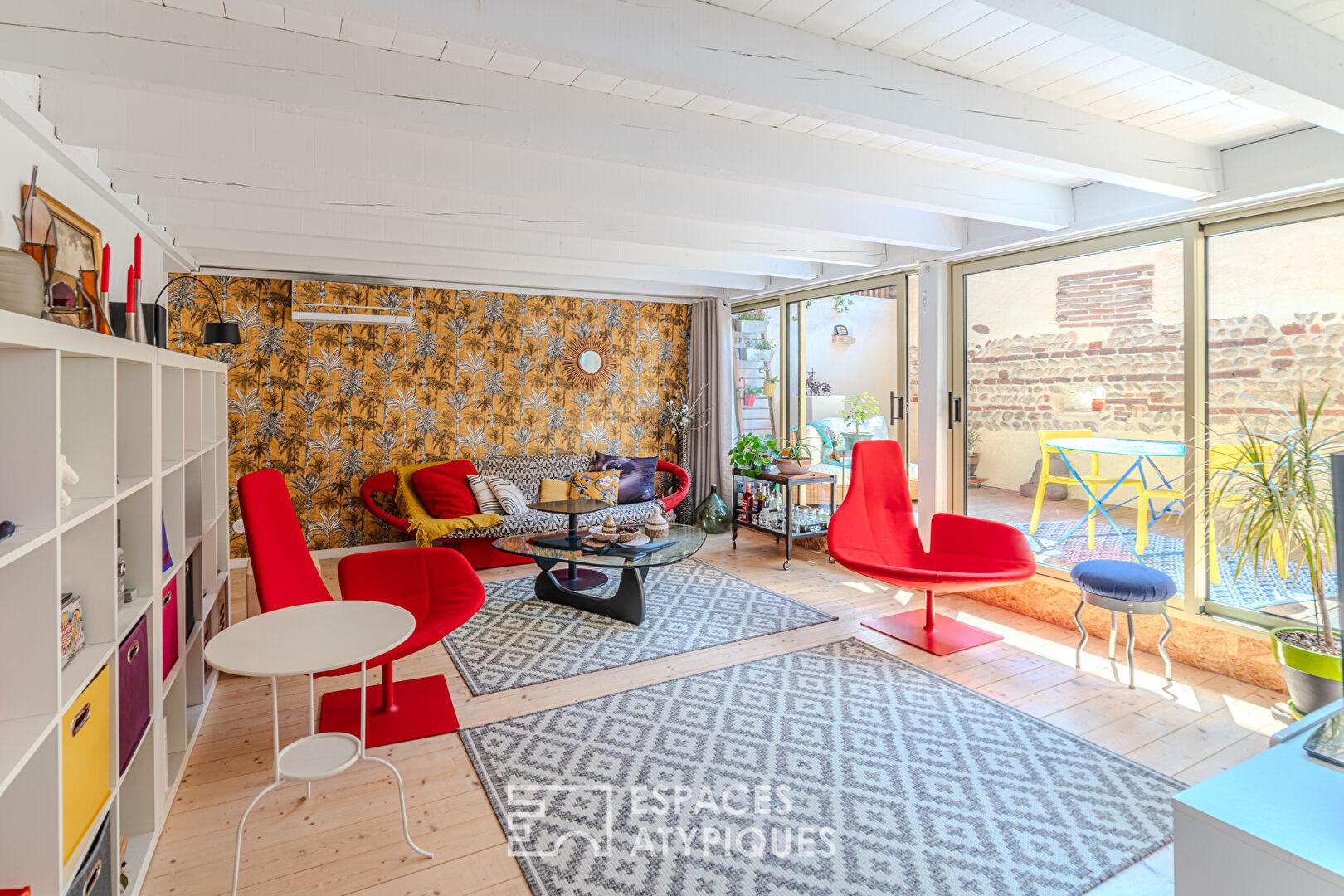À l’extérieur, le patio exposé sud constitue un espace privilégié, rare en centre-ville, propice à des moments de détente en toute intimité. La courette d’accueil renforce le caractère discret et préservé de ce bien.