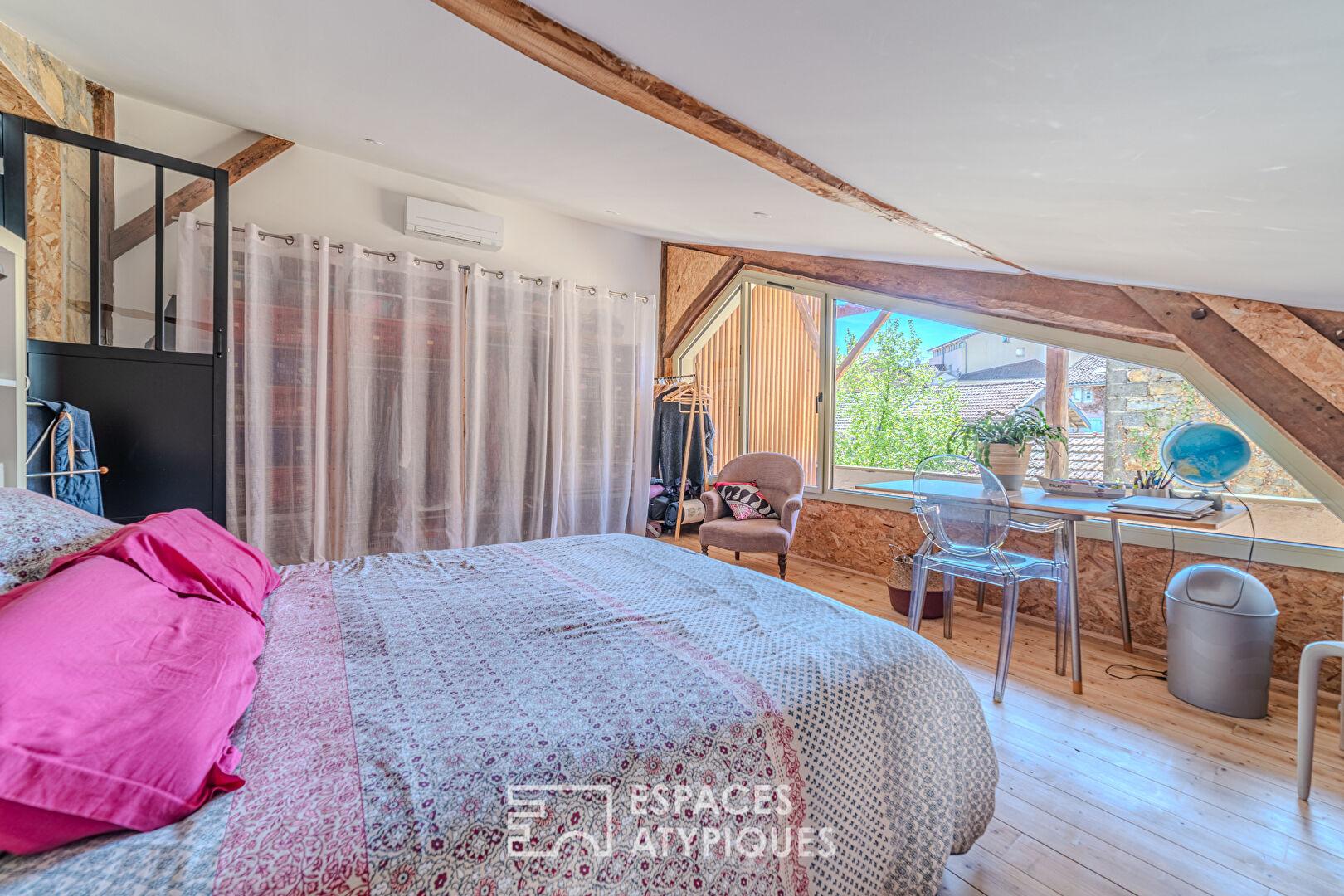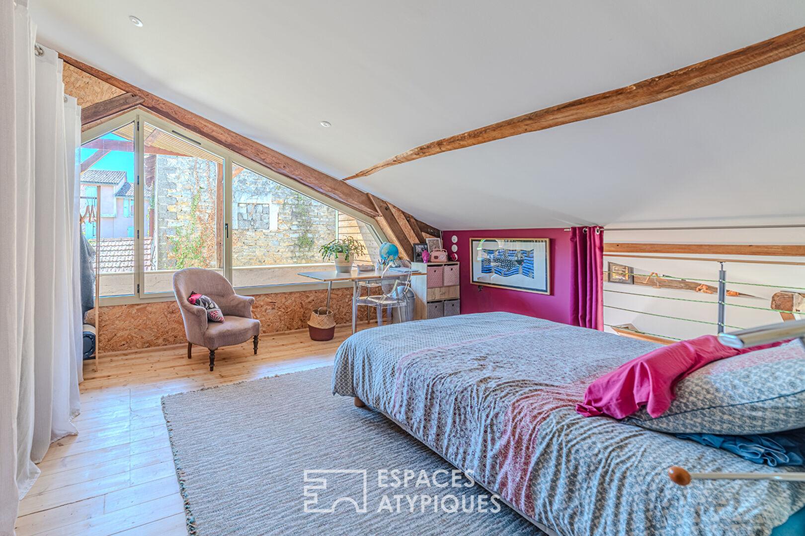 Au cœur du centre-ville de Bourg-en-Bresse, à proximité immédiate des commerces, écoles et transports accessibles à pied, cette maison de ville issue de la réhabilitation d’un ancien atelier développe environ 155 m² de surface utile.