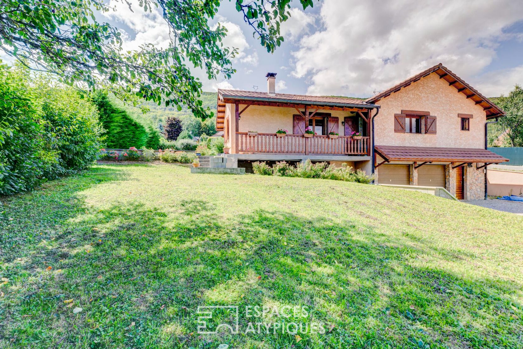 C’est à 15 minutes de Bellegarde-sur-Valserine, que se situe cette maison d’architecte de 130 m² environ construite en 2005. Celle-ci est implantée sur un terrain de 1357 m² qui offre une vue dégagée sur le Mont Blanc.
