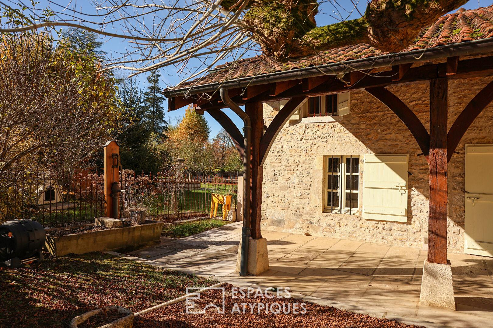 À l’extérieur, le jardin clos préserve l’intimité des lieux et profite d’une belle exposition avec sa belle fontaine en pierre qui confère au lieu une atmosphère bucolique.